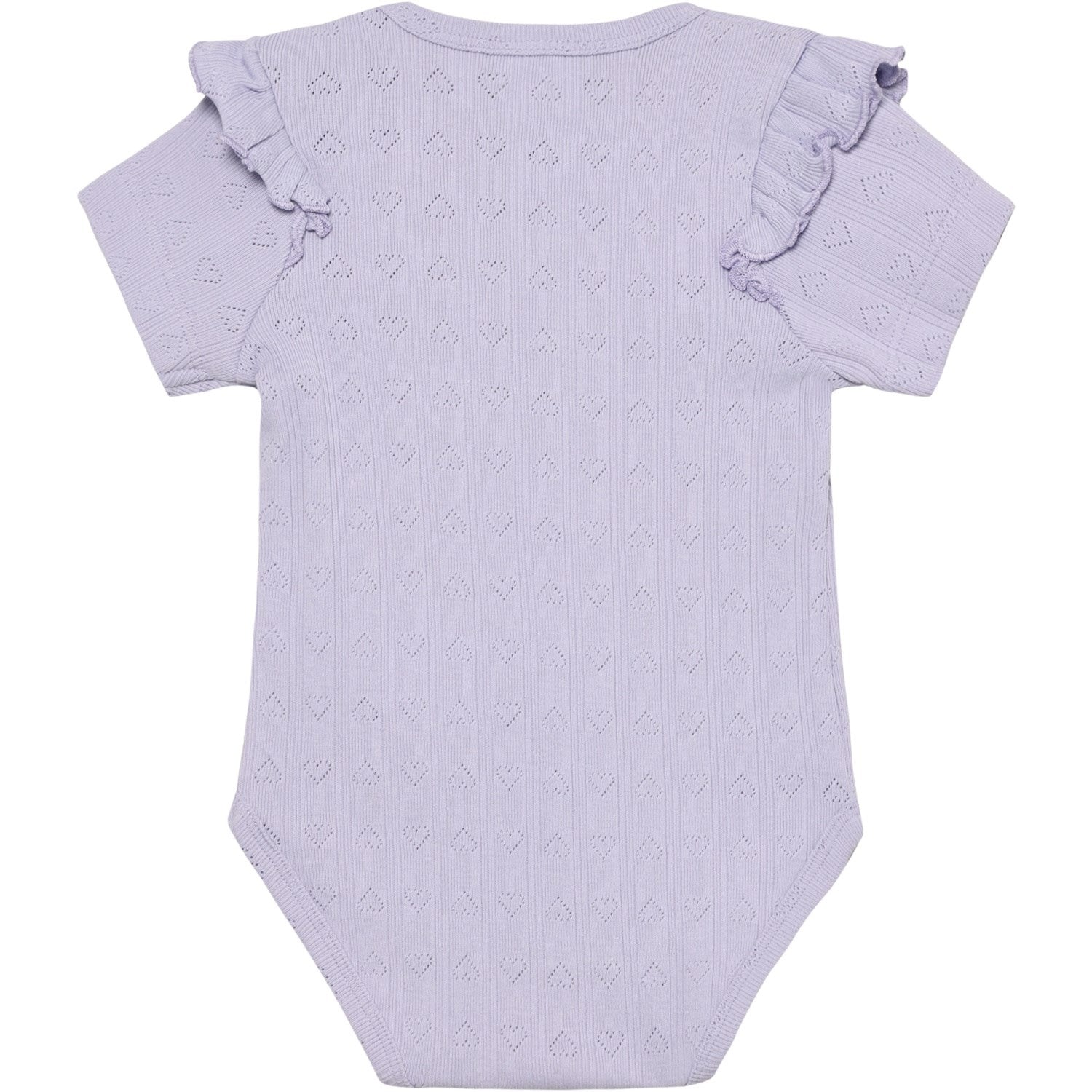 Oppdag den sjarmerende kortermede bodysuiten fra EN FANT, perfekt for din lille skatt. Med elegante volanger på skuldrene og en delikat pointellevev, tilbyr denne drakten både stil og komfort. Den lilla fargen og det unike mønsteret gir et lekent preg, mens de praktiske trykknappene på skulderen og mellom bena gjør den enkel å ta av og på. Laget for å holde, er denne bodysuiten ideell for alt fra lek til lur.
