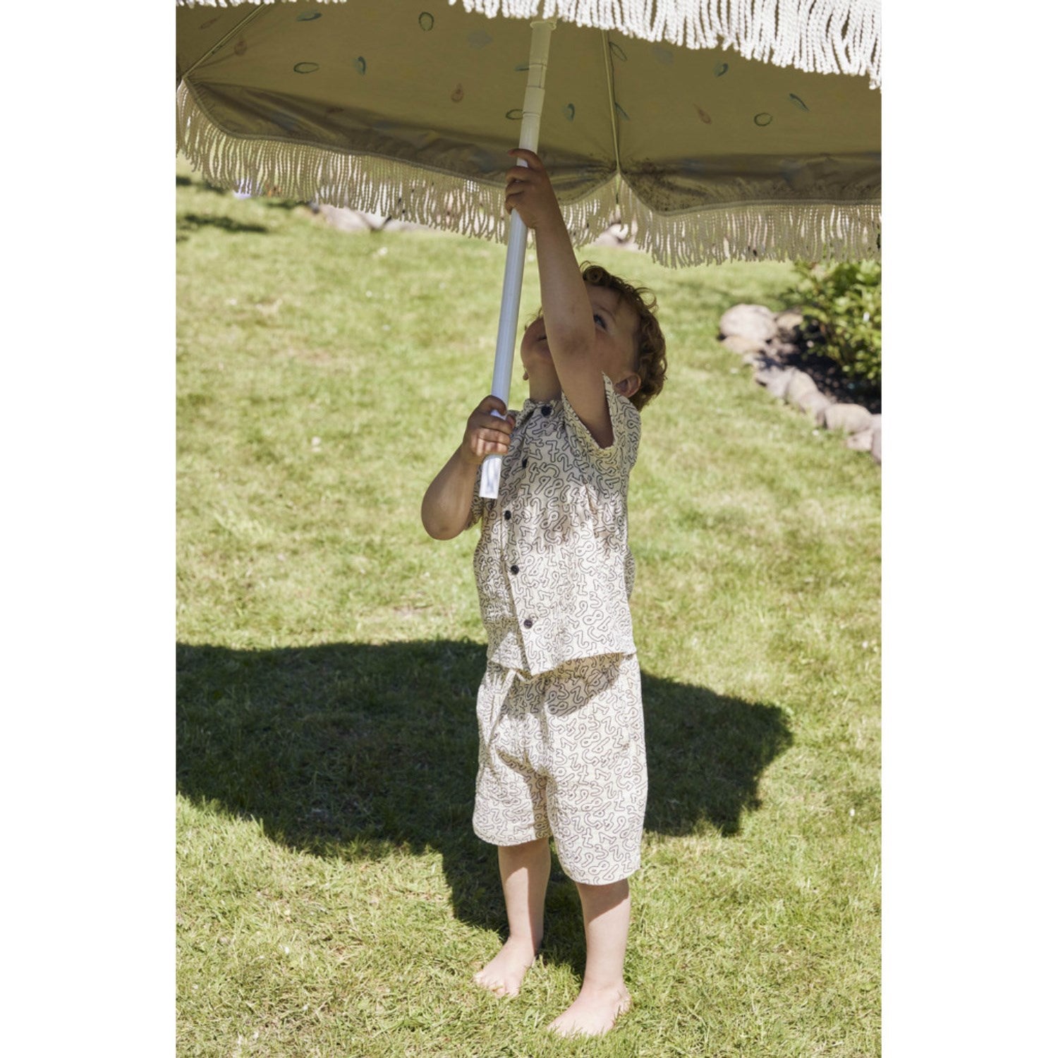 Oppdag våre behagelige og stilige Fliink Coffee Bean / Sandshell Elmo Shorts for barn! Perfekt for sommerdager, disse shortsene er laget av myk, vevd muslinkvalitet og 100 % bomull, noe som sikrer både komfort og holdbarhet. Med sitt nøytrale fargevalg og diskrete mønster, er disse shortsene både trendy og tidløse. De har en praktisk elastisk midje og sidelommer, noe som gjør dem ideelle for aktive barn på farten. Shortsen klipper midt på låret og passer ypperlig sammen med en matchende kortermet skjorte for et komplett antrekk. Vask shortsene på skåneprogrammet med 30°C for best vedlikehold. Unngå tørketrommel og bleking, men de kan strykes på lav varme. Kombiner stil og funksjonalitet med disse flotte shortsene!