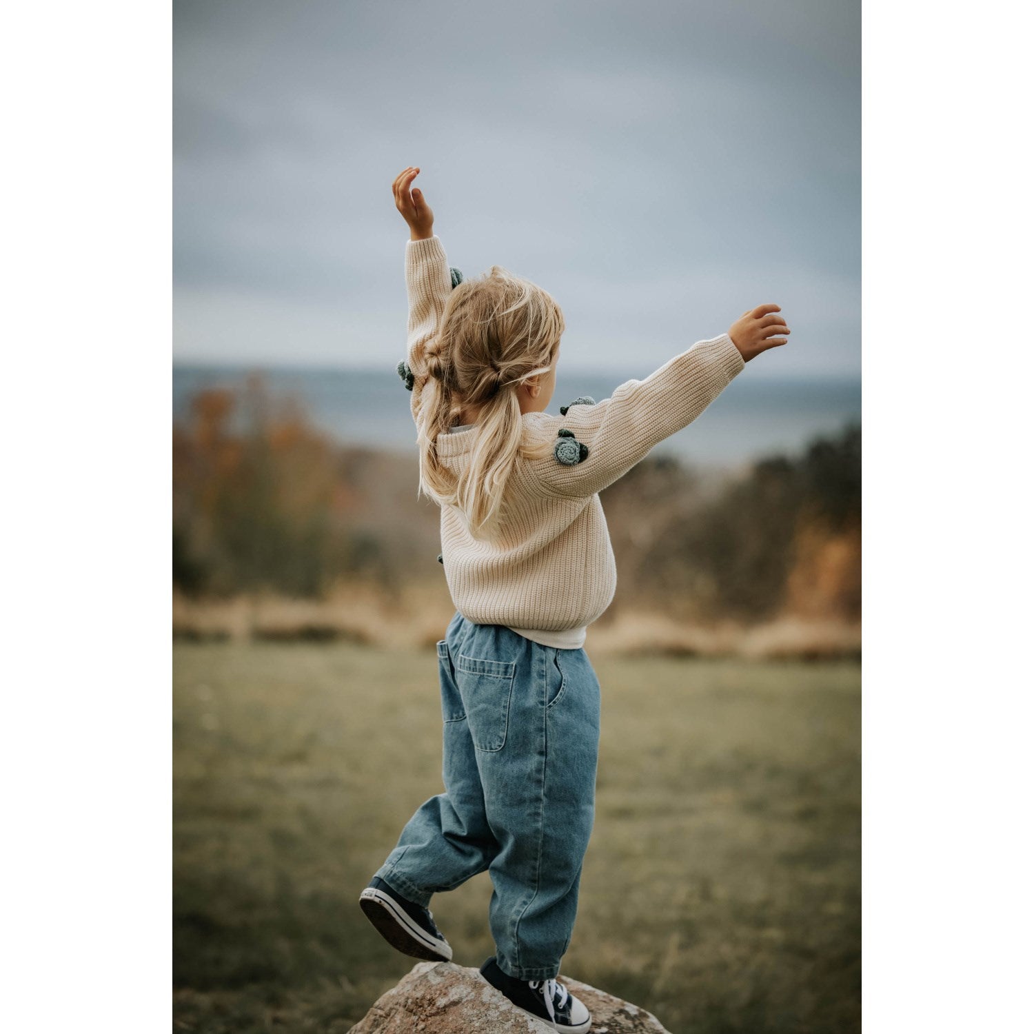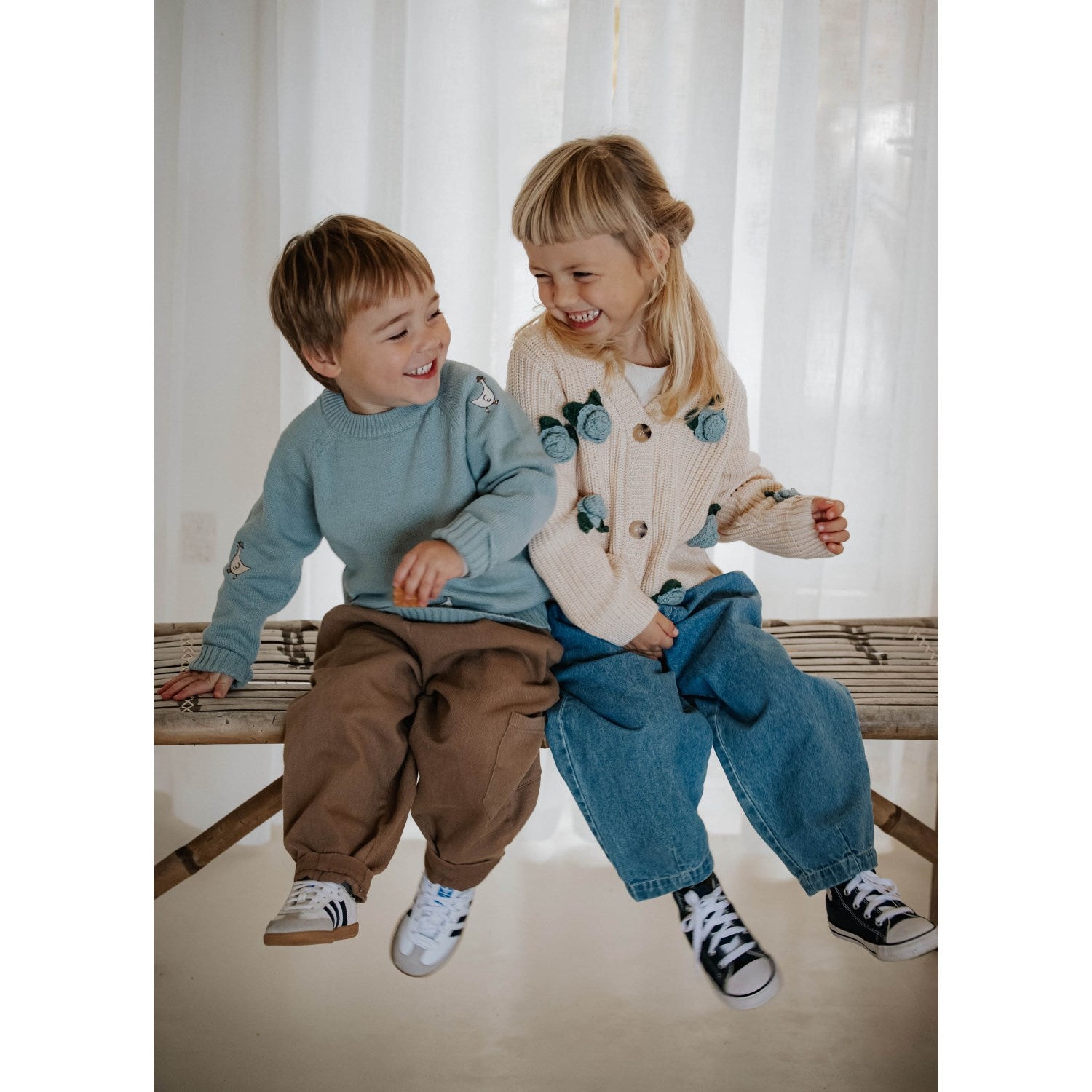 Oppdag den sjarmerende Fliink Sandshell Cool Flower Cardigan, perfekt for kaldere dager! Denne cardiganen er laget av 100 % bomull og fremstår med et patentert strikkemønster som gir et tykt og samtidig mykt plagg. Med en stilig V-hals og praktiske knapper langs fronten, kombineres funksjonalitet med estetikk. Designet er lekent og unikt, smykket med håndlagde, strikkede roser i vakre blåtoner med grønne blader, som vil fange oppmerksomheten i enhver sammenheng. Plagget er lett å vedlikeholde, men bør håndvaskes og unngå både bleking og tørketrommel. Denne cardiganen forener komfort med sjarmerende stil, og er ypperlig for barn som ønsker å se bra ut samtidig som de føler seg behagelige.
