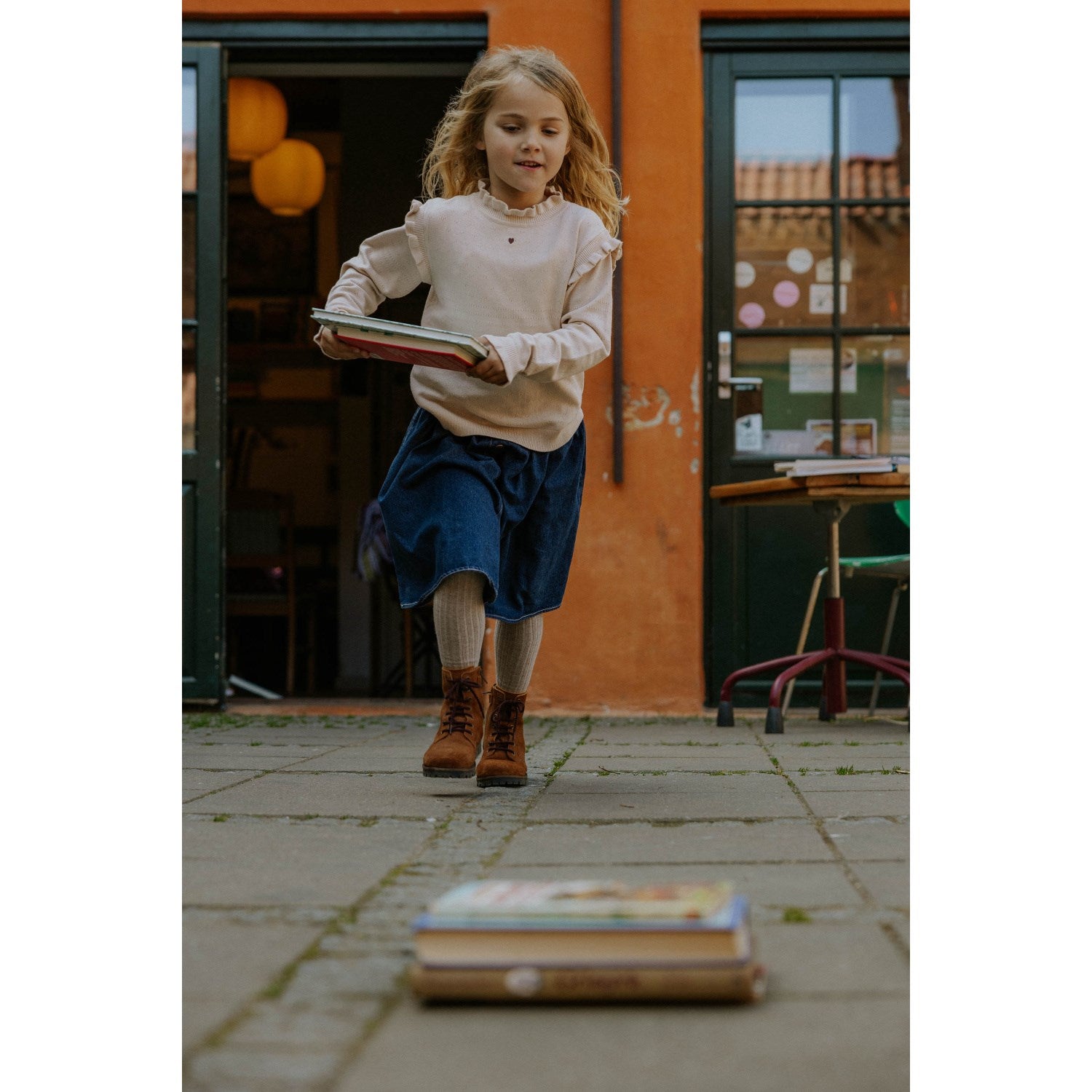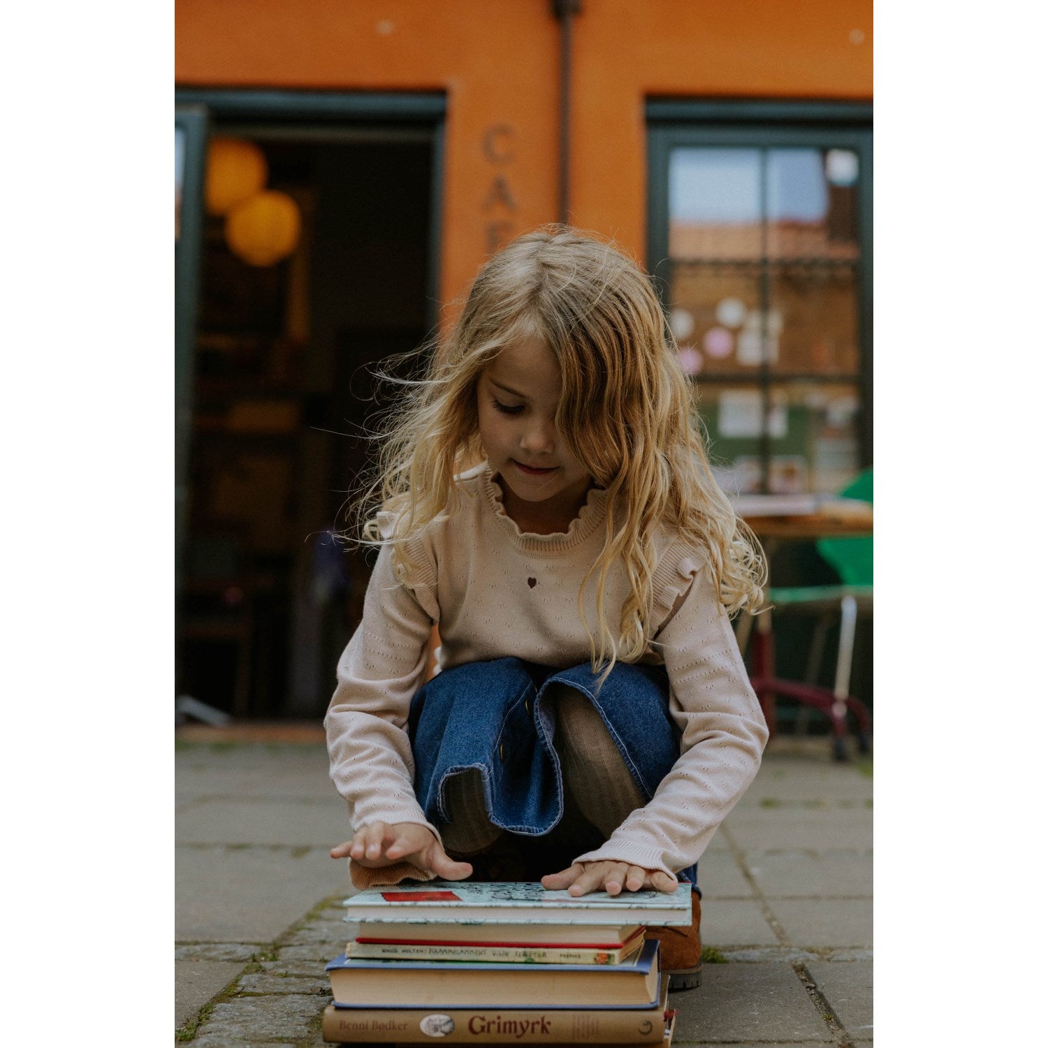 La deg begeistre av Fliink Sandshell Fame Ls Bluse, en stilig og miljøvennlig tilføyelse til barnegarderoben. Denne sjarmerende genseren kombinerer holdbarhet og design med Pointelle-strikk i en myk blanding av 80% ECOVERO-viskose og 20% polyester. Denne blusen er ikke bare skånsom mot huden, men også mot miljøet, takket være bærekraftig fiberframstilling. Med sin attraktive farge og mønster, lange ermer med volangdetaljer og et delikat brodert hjerte foran, er denne blusen perfekt for enhver anledning. Lett å ta vare på: vaskes ved 30°C og bør tørkes flatt for å bevare form og kvalitet. Gi ditt barn det beste, både i komfort og stil, med denne økovennlige og stilige blusen.