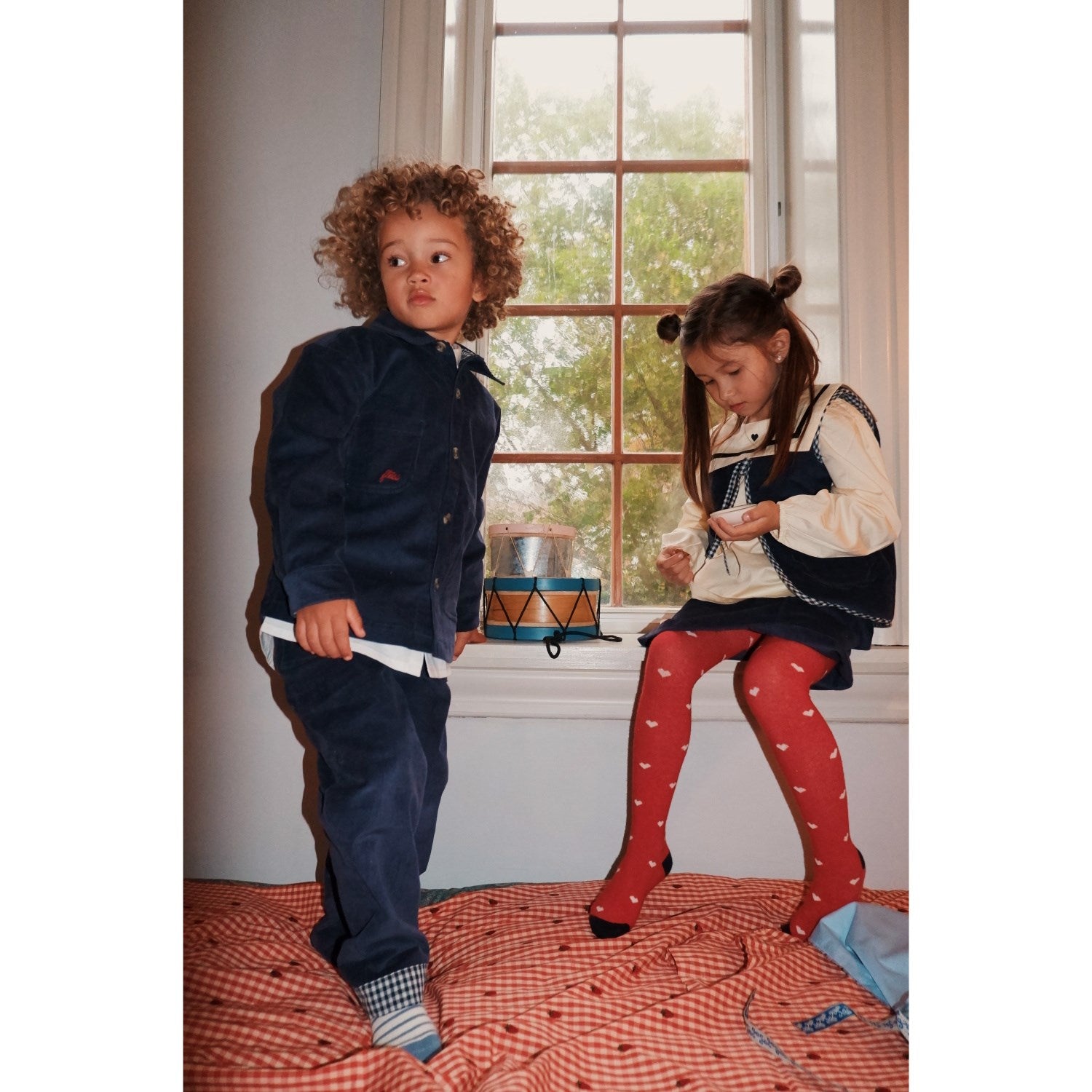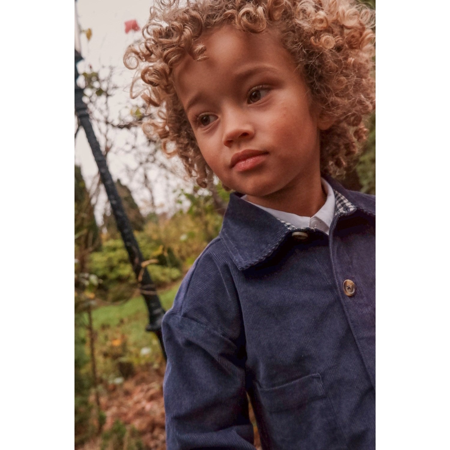 Oppdag det sjarmerende Billie Overshirt, perfekt for enhver barnegarderobe. Denne skjorten i myk bomullskordfløyel har en stilfull krage, praktiske påsydde frontlommer prydet med diskret logobroderi, og beinknapper på knappestolpen som tilfører en rustikk følelse. Det rutete fôret på innsiden av halsen og mansjettene gir en leken touch. Passer utmerket sammen med Billie Pants for en gjennomført stil. Skjorten kombinerer komfort og varighet, og er enkel å vedlikeholde, noe som gjør den ideell for barns daglige eventyr.