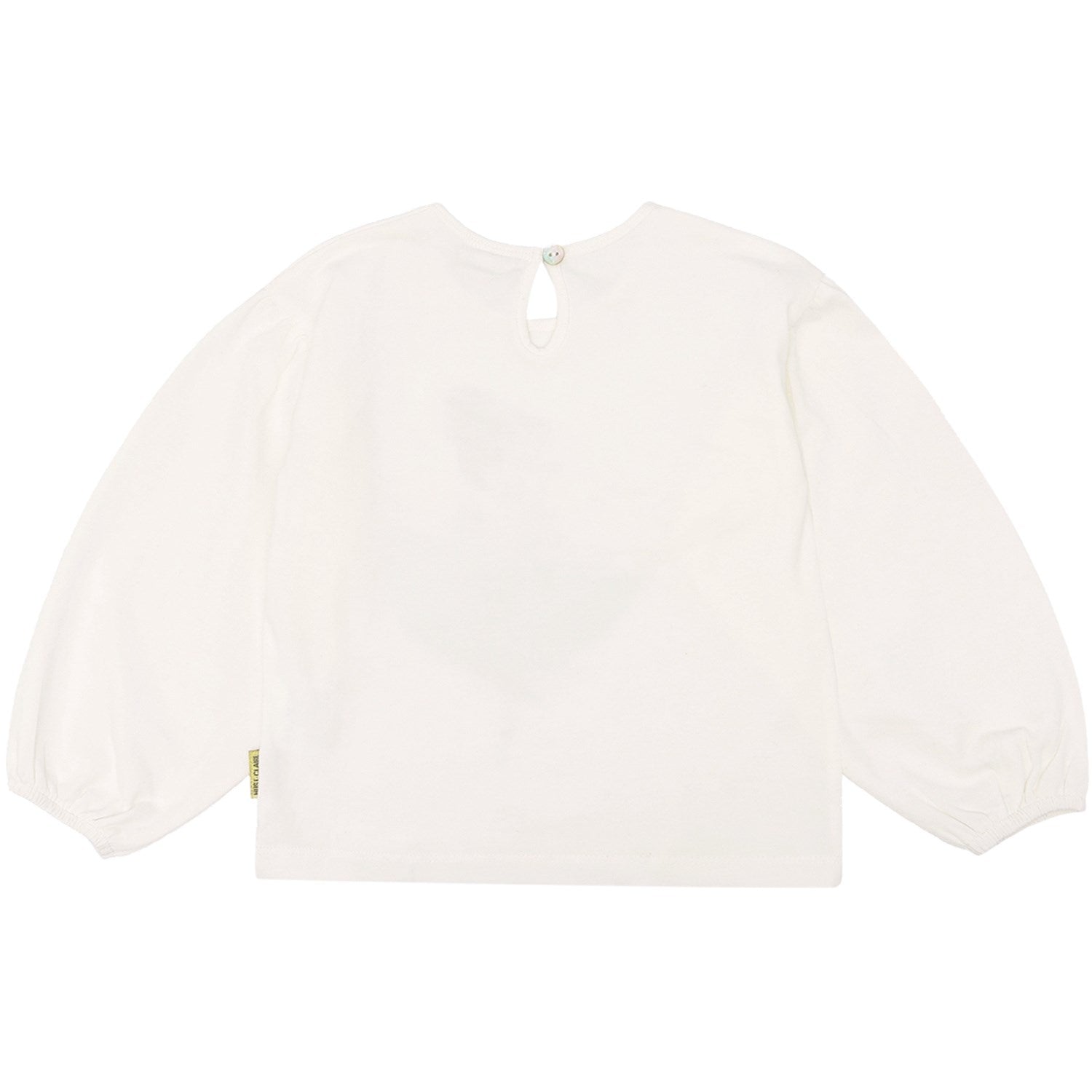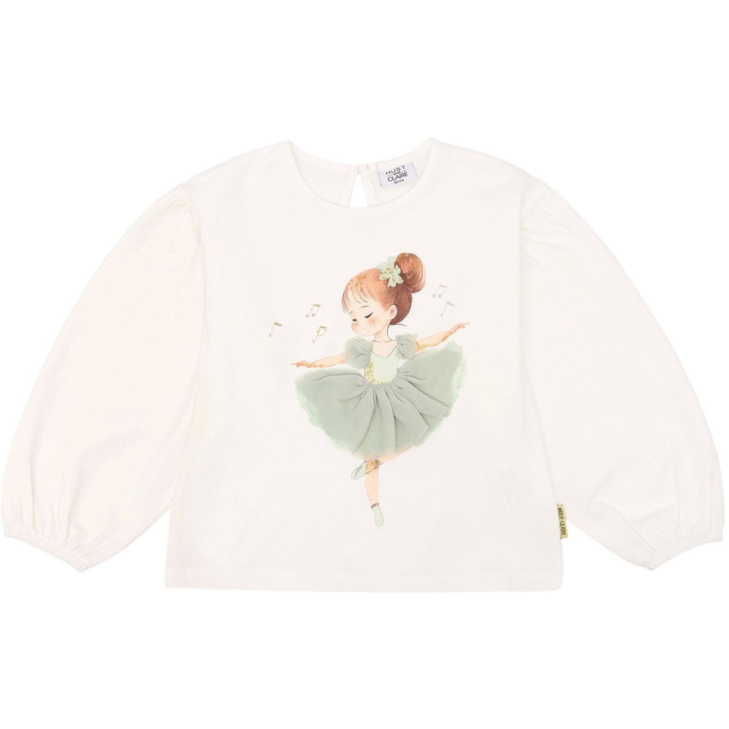Oppdag den sjarmerende Hust & Claire Ivory Alma-blusen, perfekt for enhver liten ballerina. Denne langermede t-skjorten er laget av 95% myk, økologisk bomull, tøyelig nok til lek og moro. Designet fanger oppmerksomheten med et detaljert ballerina-trykk, komplett med tyll og glitrende detaljer. T-skjorten har også praktiske detaljer som rynker på skuldrene, elastikk i ermene og enkel knappelukking i nakken for komfortabel påkledning.