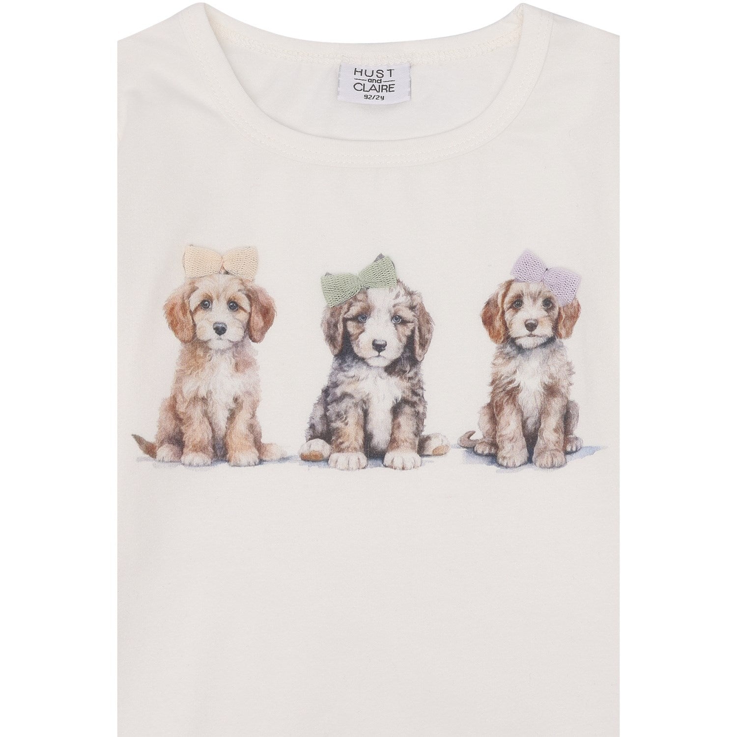 Oppdag den sjarmerende Hust & Claire Ivory Alma-blusen, perfekt for lekne dager. Denne langermede T-skjorten er laget av 95% økologisk, kraftig bomull som føles myk mot huden. Fronten prydes av et sjarmerende trykk med tre hunder og lekne sløyfer, og størrelsene 86-128 kommer med dekorative sløyfer som tilfører et lekfullt preg. Rynkene på skuldrene og elastikken i ermene sørger for en behagelig passform, mens knappelukking i nakken gjør den enkel å ta av og på. Denne blusen er ikke bare behagelig, men også stilfull og funksjonell for barnas hverdagsaktiviteter.