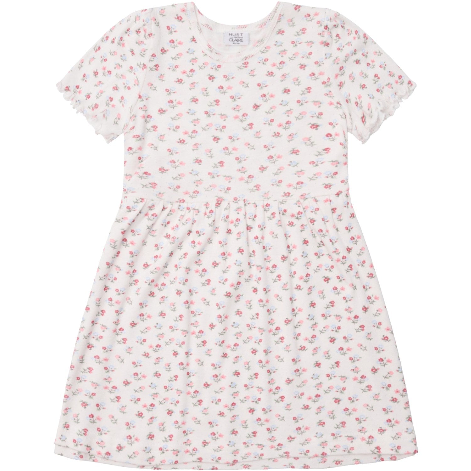 La barnet skinne i denne sjarmerende Donna kjolen fra Hust & Claire. Perfekt for enhver anledning, denne kjolen kombinerer stil og komfort på en elegant måte. Fremstilt i myk og elastisk bomull garanterer den en behagelig passform, mens det delikate blomstertrykket og de elegante blondemønstrene tilfører en touch av stil og femininitet. Donna kjolen er designet med praktiske babylock-kanter på ermene og et flatterende snitt i midjen som gir ekstra vidde for bevegelsesfrihet.