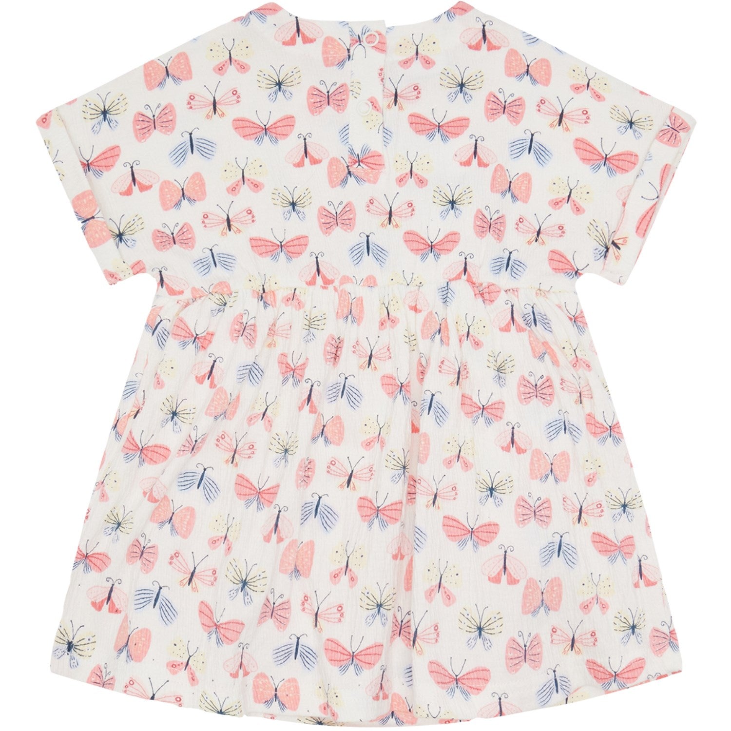 Oppdag den sjarmerende "Kaja Kjole" fra Hust & Claire, perfekt for den lille prinsessen din! Denne kortermede bodykjolen er laget i elastisk jersey med en delikat rynkestruktur, som gir et mykt og behagelig plagg. Kjolens herlige sommerfugltrykk vil garantert vekke begeistring hos både store og små.