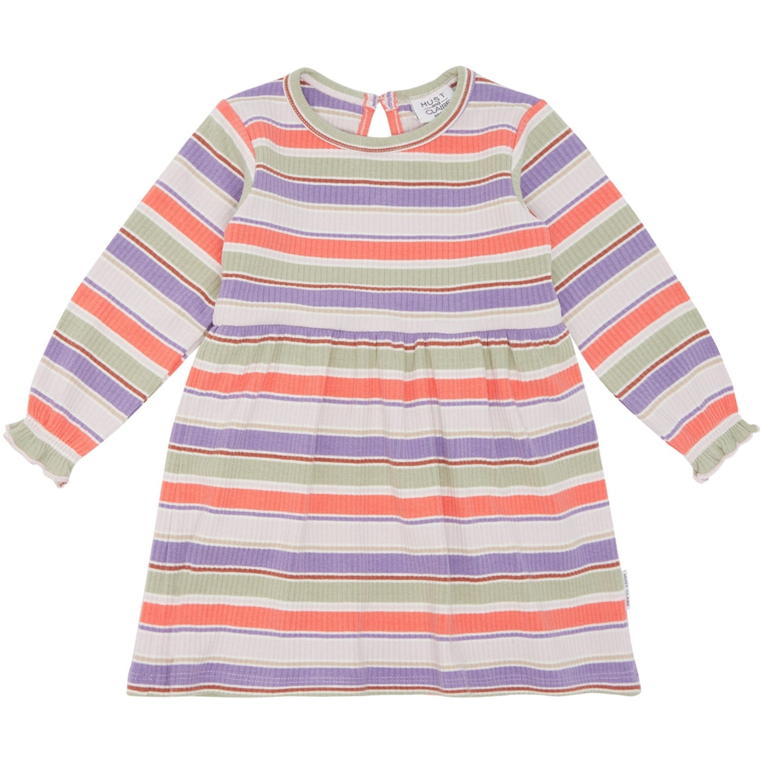 Gi barnet ditt gleden ved å kle seg i Hust & Claire Lavender Kristi Kjole, en kjole som kombinerer stil og komfort for de små. Laget av 50 % økologisk bomull, er denne ribbestrikkede bomullsjersey-kjolen både myk og behagelig mot sensitiv barnehud, samtidig som den støtter miljøvennlige praksiser. Kjolens unike snitt ved midjen tilbyr rikelig med vidde som gir frihet til lek og bevegelse, perfekt for aktive barn.