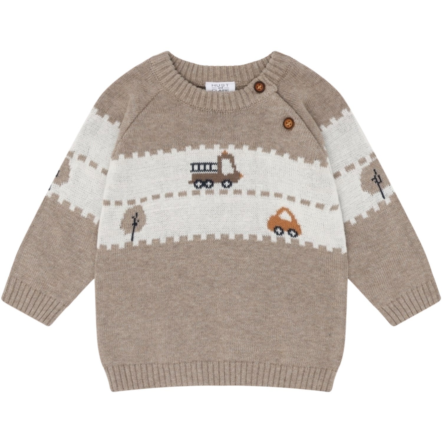 Oppdag gleden ved Hust & Claire's "Sand Melange Pilou On The Road" strikkegenser, perfekt for eventyrlystne barn! Denne komfortable genseren er laget i myk strikk, ideell for barnets sensitive hud, og kommer i en herlig sandmelert farge med sjarmerende mønstre. Designet kombinerer stil med funksjonalitet, og den løse passformen sikrer at barnet ditt kan bevege seg fritt. Lett å vedlikeholde, denne genseren er både praktisk og stilig, noe som gjør den perfekt for enhver anledning, fra lek i parken til familieutflukter.