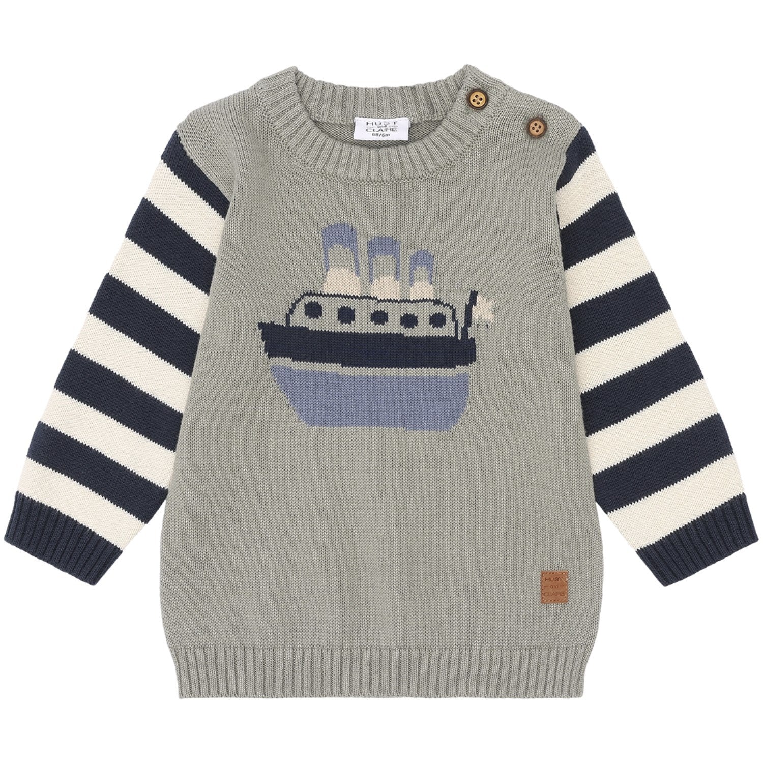 Oppdag gleden ved Hust & Claire Seagrass Pilou Pullover - den perfekte strikkegenseren for ditt barn! Laget av 100% økologisk bomull, føles denne genseren utrolig myk mot huden. Designet fanger øyet med sitt lekne skipmotiv foran og stilig stripete ermer. En praktisk knappelukking på venstre skulder gjør påkledningen enkel. Genseren kombinerer komfort med holdbarhet og er enkel å vedlikeholde, ideell for daglig bruk.