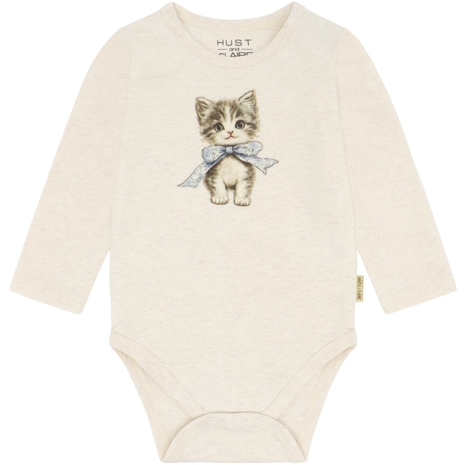 Kle din lille skatt i Hust & Claire's "Whisper Melange Britt Bue Kitten" body - en perfekt blanding av stil og komfort. Denne sjarmerende bodyen er laget av mykt materiale som er skånsomt mot barnets hud, med et lekent kattemønster i delikate fargetoner. Med praktiske trykknapper for enkel påkledning og en behagelig passform som gir god bevegelsesfrihet, er denne bodyen ideell for både lek og hvile. Maskinvaskbar for enkel pleie.