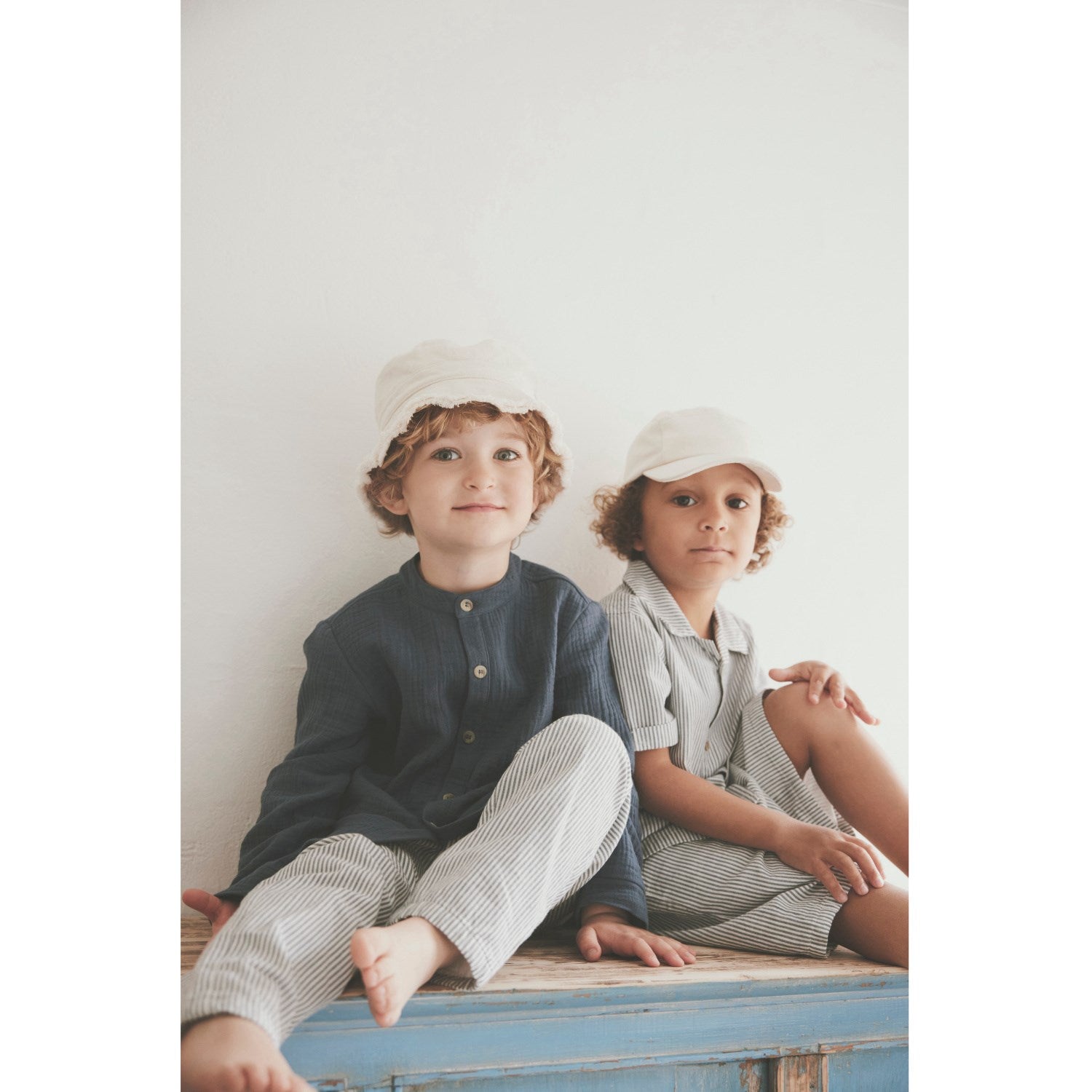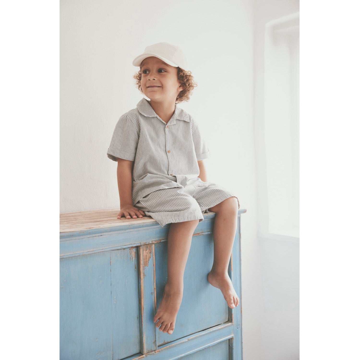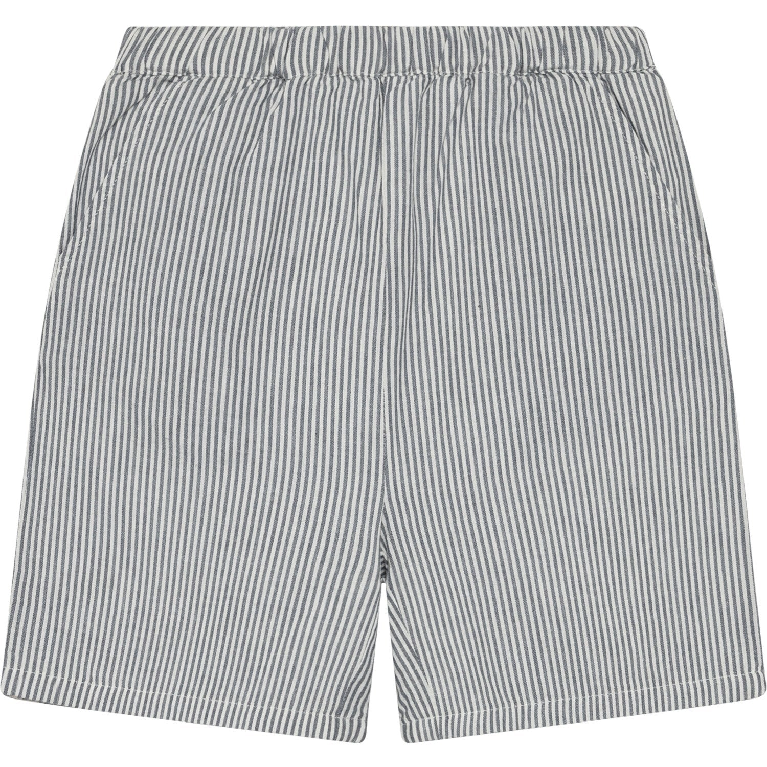 Disse komfortable og stilige stripete shortsene er laget for aktive barn, med et materiale av 100 % myk og pustende bomull som gjør dem ideelle for lek og avslapning. Den tidløse stripete designen i beroligende farger og upåklagelig utførelse fra Huttelihut gjør dette plagget til et perfekt valg for både gutter og jenter.