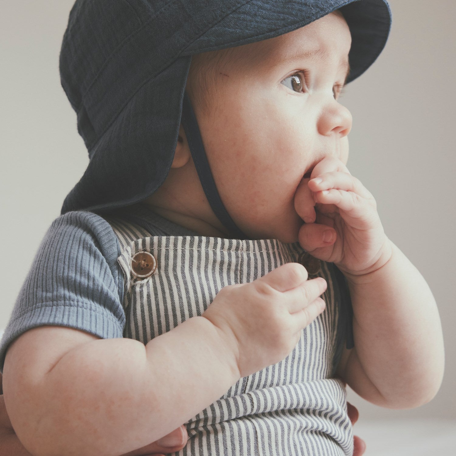 Lua skjermer effektivt mot solen takket være det lette stoffet og den allsidige stilen. Passformen er nøye konstruert for å være behagelig for små hodestørrelser, og ludesignen sørger for at hodet holdes kjølig og komfortabelt beskyttet mot solen. Lua er også enkel å vedlikeholde; den kan vaskes i maskin på skånsom syklus, noe som gjør den ideell for travle sommerdager.
