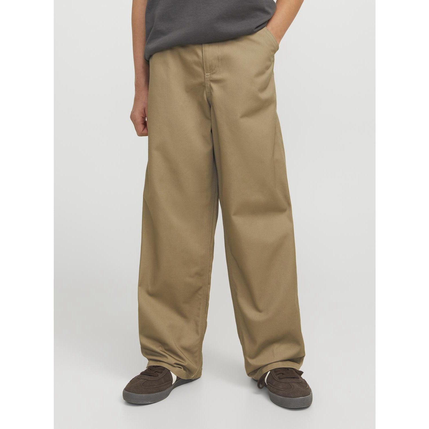 Gjør hverdagseventyrene stilige med Jack & Jones Junior Elmwood Alex Clean Worker Bukser Noos. Disse buksene er laget av et robust vevd stoff som sikrer holdbarhet uten å strekke seg, perfekt for aktive barn. Den klassiske arbeidsstilen kombinert med en moderne snitt gir et røft og kult utseende, mens den nøytrale fargen gjør dem enkle å matche med annet tøy. Med både baklommer og frontlommer, samt en praktisk glidelåsflue, er disse buksene både funksjonelle og fasjonable. Designet for gutter i alderen 3-16 år, tilbyr de en behagelig middels høy midje og god passform som beveger seg med barnets kropp. Jack & Jones Junior skaper antrekk som kombinerer komfort med ungdommelig energi, noe som gjør disse buksene til en perfekt tilføyelse til enhver garderobe.