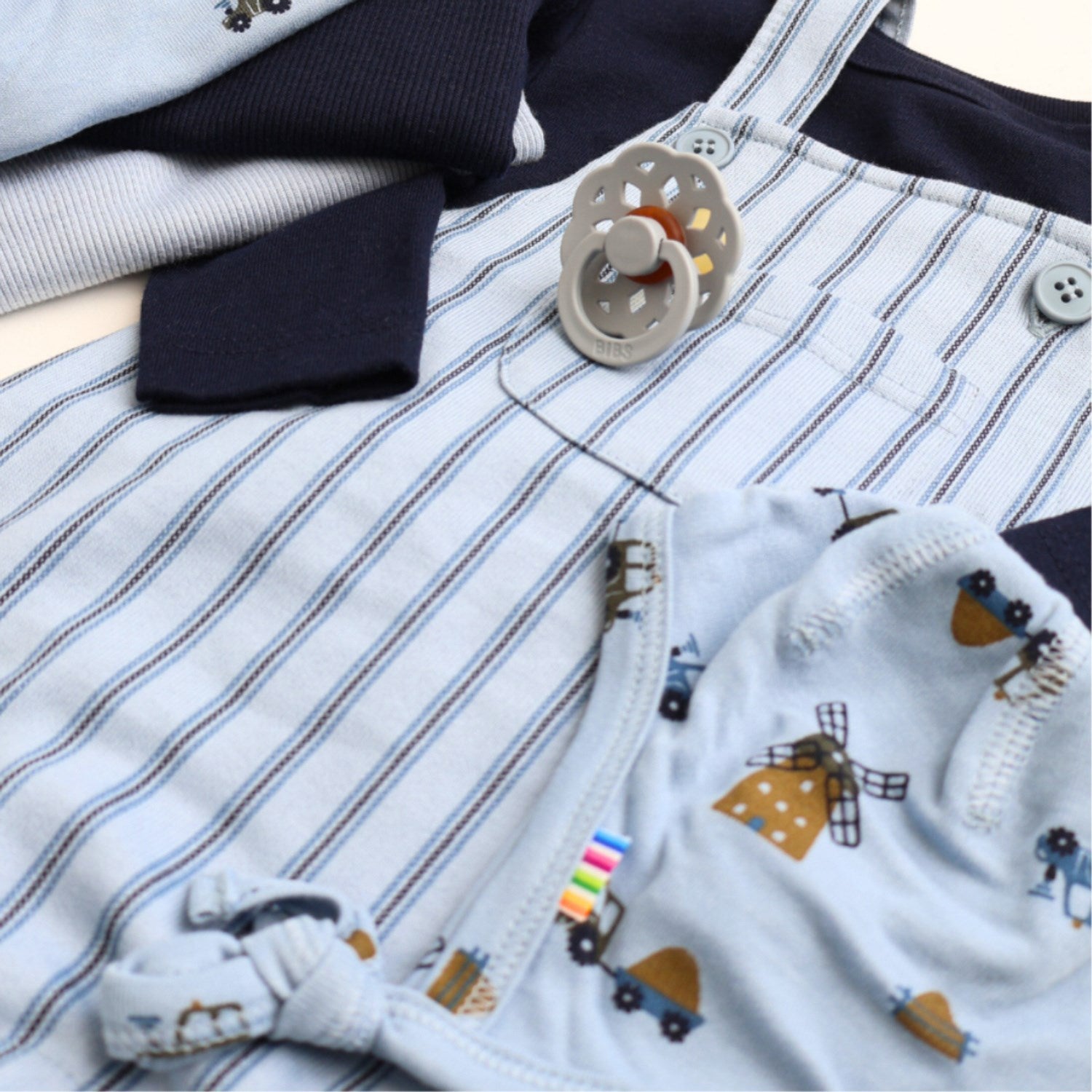 Denne sommerdressen kommer i et vakkert stripete mønster og beroligende blåfarger, perfekt for både lekne ettermiddager og stille stunder. Med Oeko-Tex 100-etiketten kan du være sikker på at plagget er fritt for skadelige stoffer, noe som er essensielt for barnets sensitiv hud.