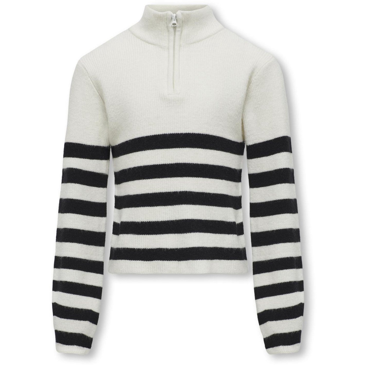 kids ONLY Cloud Dancer Black Franca Half Zip Stripe Strikk Bluse Noos