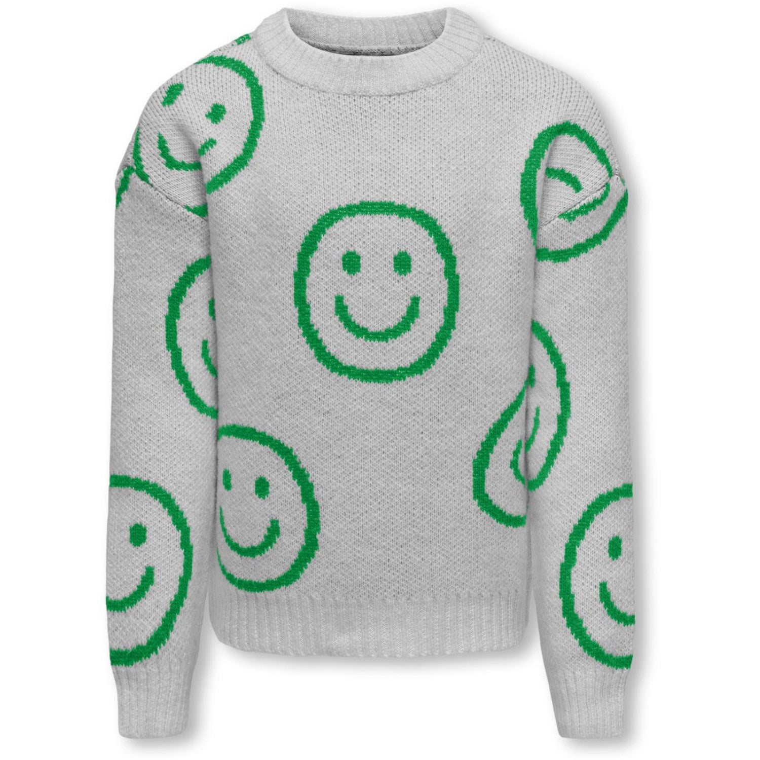kids ONLY Light Grey Melange Island Green Happy Smiley Happie Pullover Strikket bluse