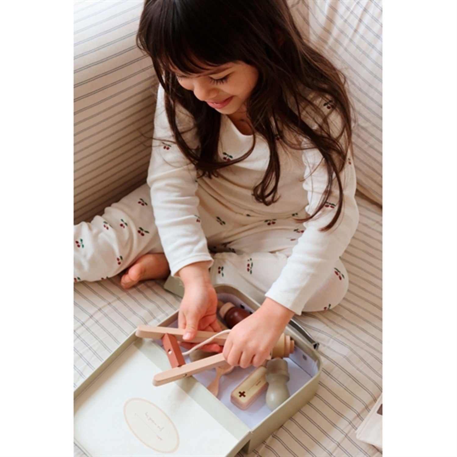 Gi barnet ditt det aller beste med de nydelige Konges Sløjd Cherry Jersey-buksene. Laget av myk og behagelig jersey-kvalitet, sikrer disse buksene komfort hele dagen. Med sitt sjarmerende kirsebærmønster og stilrene design, er de ikke bare komfortable, men også stilige. Disse buksene er enkle å ta vare på, og passer perfekt fra lek til hvilestund. Idealisk kombinert med andre plagg fra samme merke for en gjennomført stil.