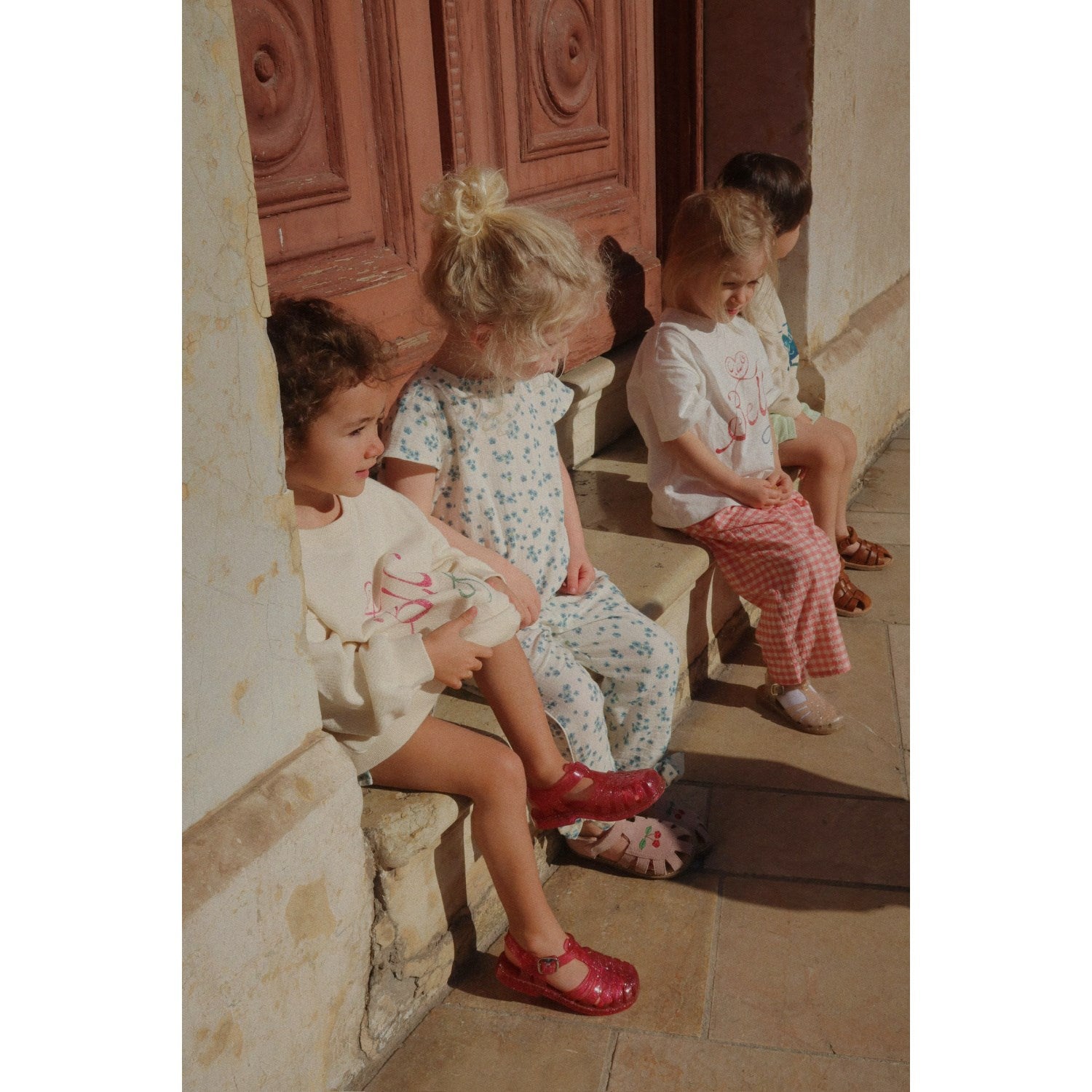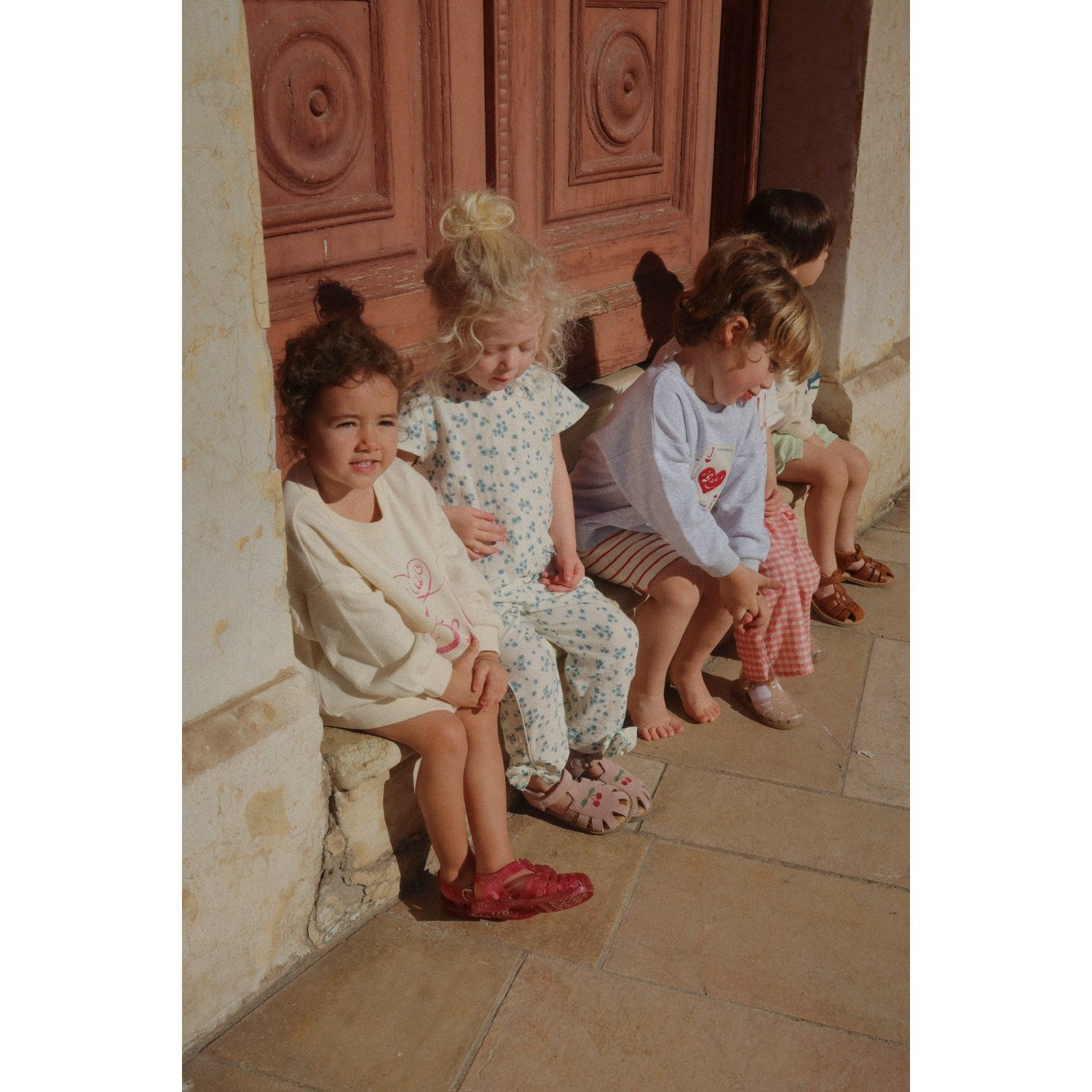 Denne bedårende Konges Sløjd-toppen er perfekt for enhver liten eventyrer. Laget av myk, økologisk bomullsmusselin, er den ikke bare behagelig, men også miljøvennlig. Med sitt håndtegnede forglemmegei-blomsttrykk henter den inspirasjon fra nostalgiske barndomsminner. Den korte ermene og lett stoff gir utmerket bevegelsesfrihet, ideell for lek og moro. Lett å vedlikeholde, dette plagget kombinerer stil med funksjonalitet på beste måte.