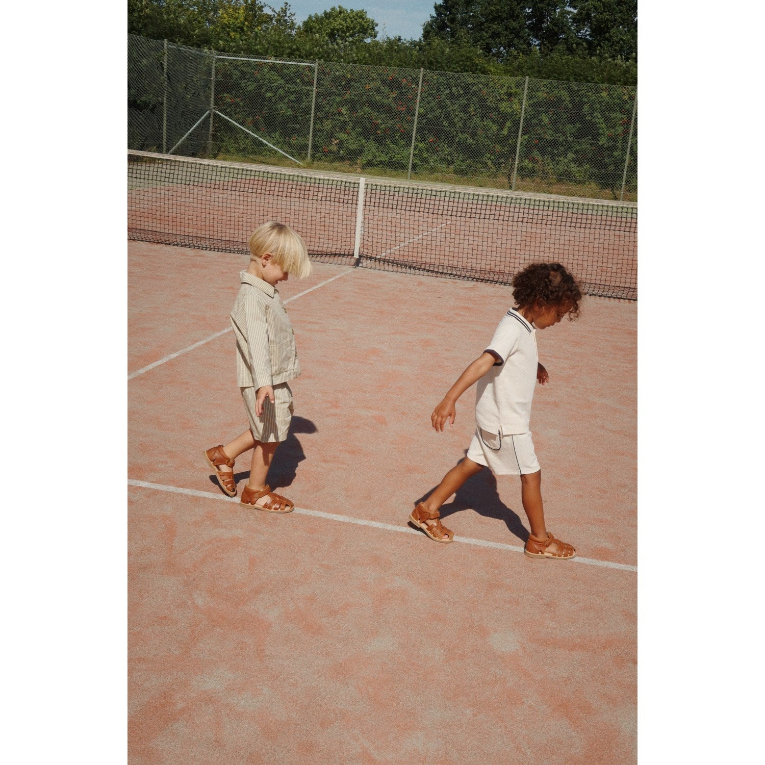 Oppdag Konges Sløjd Tea Stripe Frankie Over Skjorte, en ideell følgesvenn for små eventyrere. Denne skjorten er laget av 100 % økologisk bomull i en litt tyngre twillkvalitet, perfekt som en overskjorte eller en lett jakke. Med sin klassiske krage og stilig påsydde frontlommer kombinerer den funksjonalitet med tidløs stil. GOTS-sertifisert, lover den både bærekraft og kvalitet, og garanterer komfort og holdbarhet. Et allsidig plagg som passer til enhver anledning, enten det er lek ute eller en rolig dag hjemme.