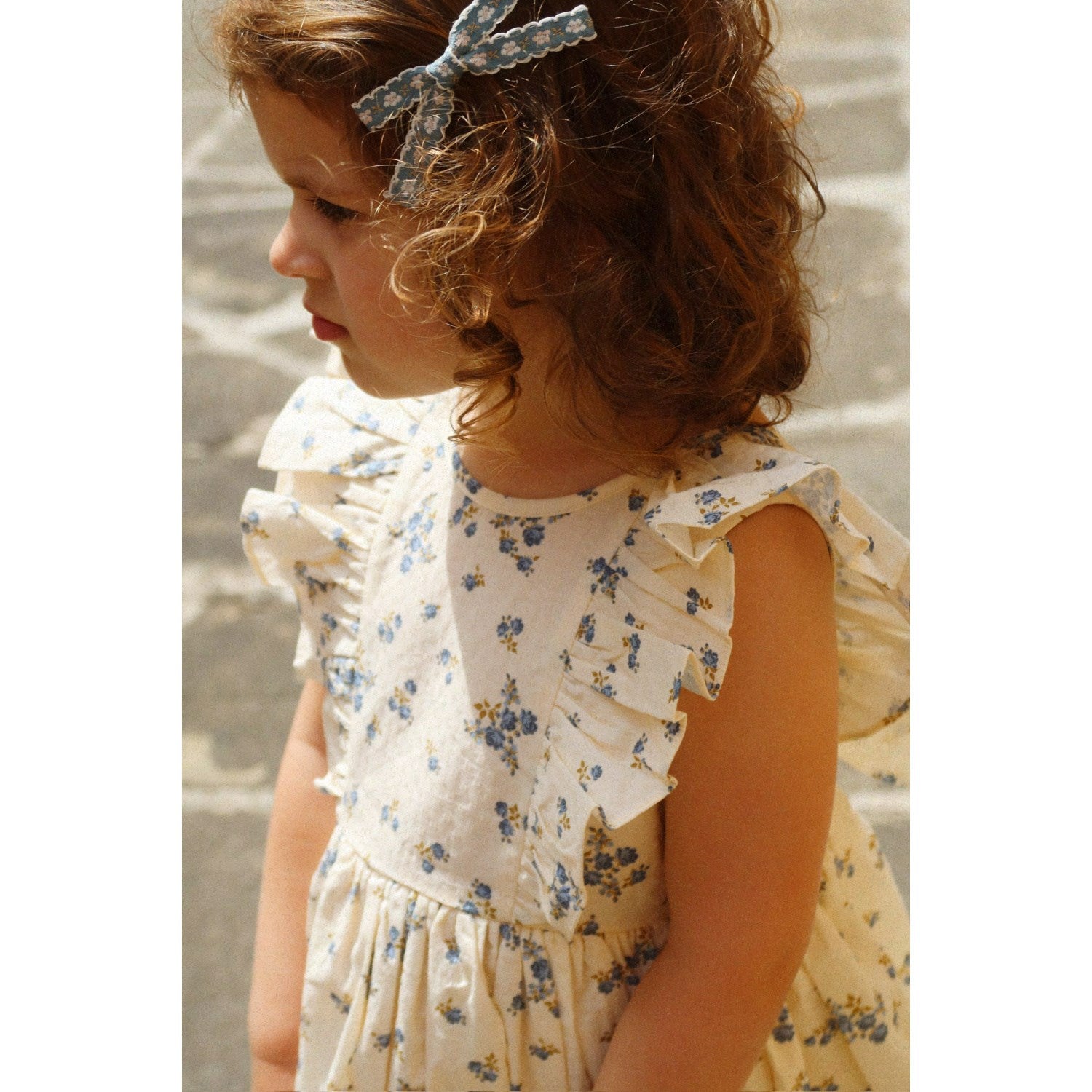 Oppdag Konges Sløjd Tramonto Cianna Kjole Gots, en kjole som kombinerer stil med komfort. Denne sommerkjolen er laget av sertifisert økologisk bomull, og har dekorative volangermer samt sløyfedetaljer på ryggen som gir et unikt preg. Perfekt til både fest og hverdags.
