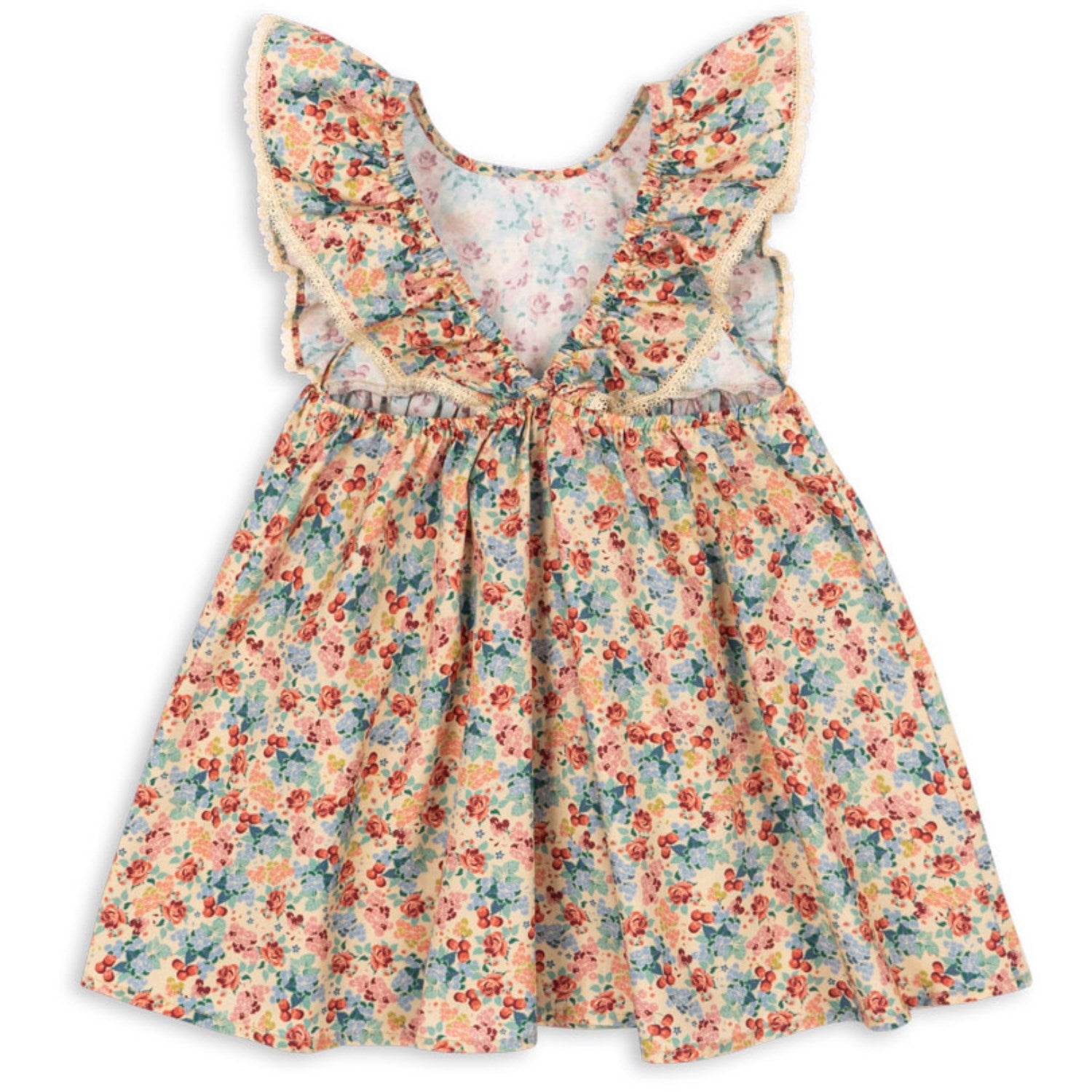 Ta en titt på vår sjarmerende Konges Sløjd Vienna Verbena Kjole, perfekt for sommerens eventyr! Denne myke kjolen er fremstilt av 100 % økologisk bomull som er GOTS-sertifisert, noe som garanterer både miljøvennlighet og kvalitet. Med sine søte volangstropper prydet med delikate blondedetaljer og en elegant dyp utringet rygg, kombinerer kjolen komfort med stilfull eleganse. Det utbredte skjørtet tillater fri bevegelse, ideelt for lek eller en familie sammenkomst. Pleieinstruksjoner er enkle, slik at dine små kan fortsette å utforske uten bekymringer.