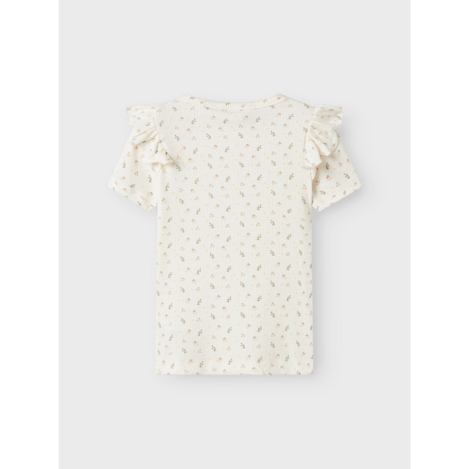 Gi barnets garderobe et løft med Lil'Atelier Coconut Milk Gago Kuo Slim T-Shirt. Denne elegante T-skjorten er fremstilt av jersey, kjent for sin lette og elastiske kvalitet som gir en myk følelse mot huden. Med korte ermer, rund hals og sjarmerende frill-detaljer, kombinerer den stil med komfort.