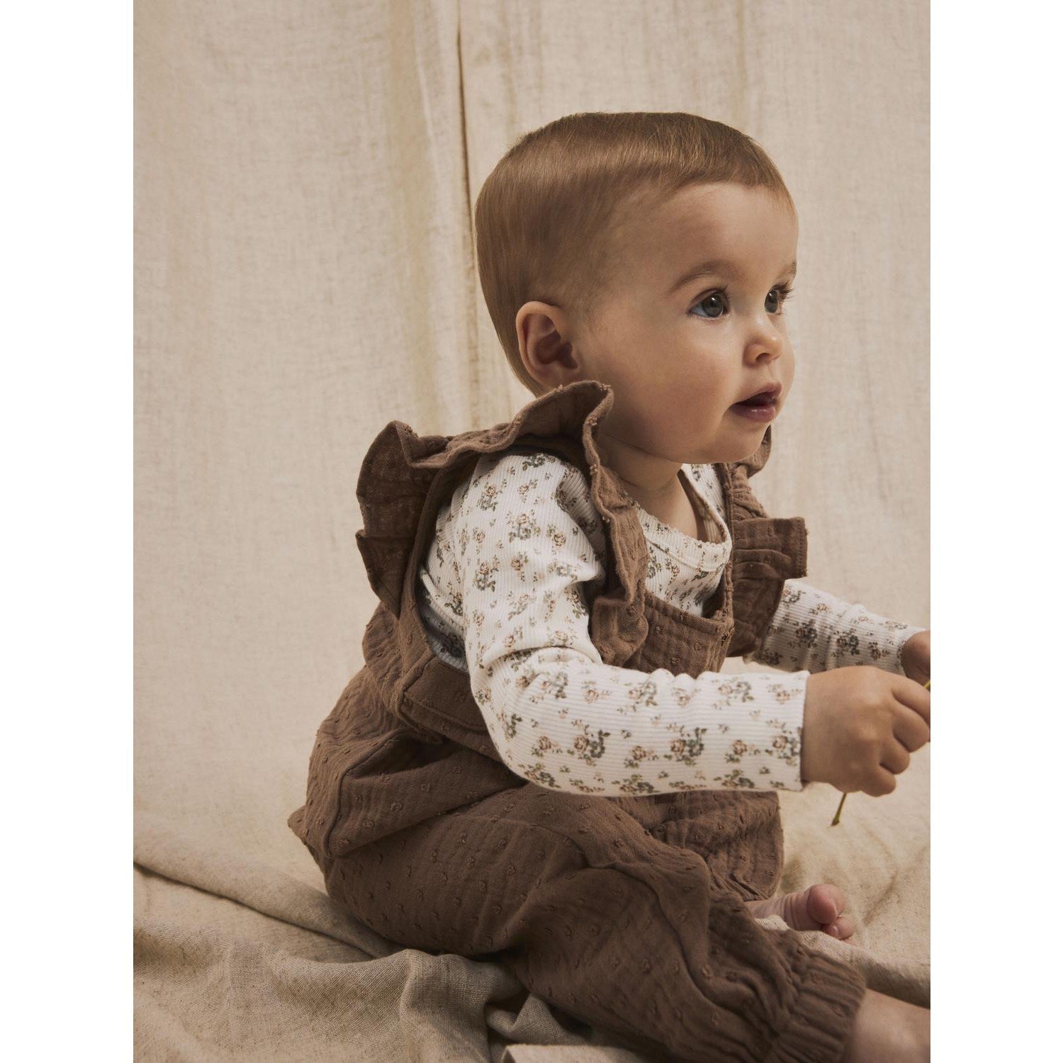 Oppdag den sjarmerende Lil'Atelier Coconut Milk Gago Slim Body Noos, den ideelle bodysuiten som kombinerer stil og komfort for de minste. Laget av jersey, et materiale kjent for sin letthet og elastisitet, sikrer det en myk følelse mot huden samt utmerket bevegelsesfrihet. Dette plagget har en klassisk rund hals, lange ermer og praktiske trykknappfester for enkel påkledning. Med sitt nøytrale fargen "Coconut Milk" og diskret etikettdetaljering, er denne bodyen ikke bare behagelig, men også trendy. Perfekt for alt fra lek i parken til koselige hjemmedager, den er en garantert favoritt i barnegarderoben. Merk at produktet skal holdes unna brann for barnets sikkerhet. Lukking: Trykknapp feste Materialer: 57% Økologisk bomull, 38% TENCEL™ Lyocell, 5% Elastan Materialer og pleie: Vask med lignende farger. Vask på vrangen Vaskeinstruksjoner: Maksimal vasketemperatur 40 °C - normal prosess Ekstra: Hovedmaterialet i dette produktet inneholder minimum 50% økologisk bomull. Økologisk bomull dyrkes uten bruk av skadelige kjemikalier. Økologisk bomullsdyrking beskytter naturressurser og biologisk mangfold