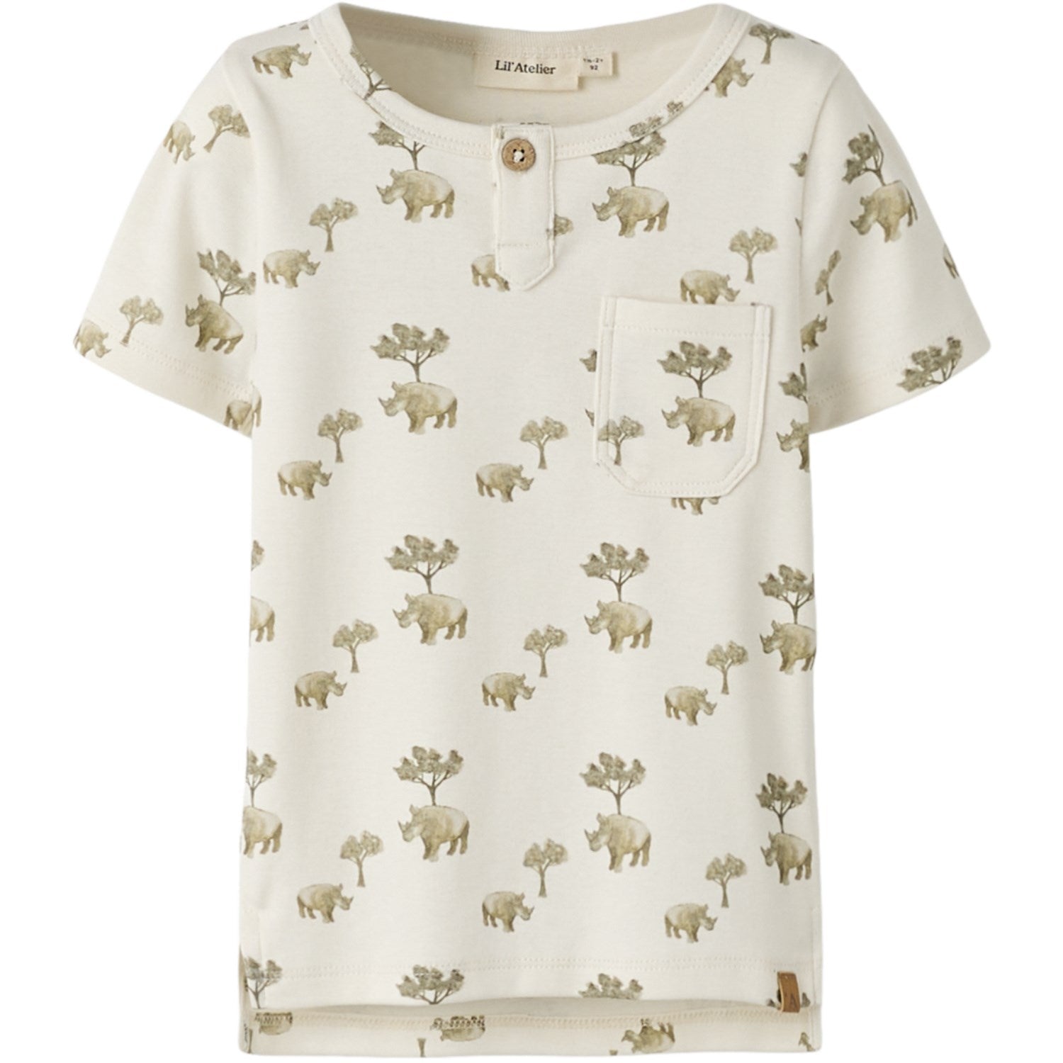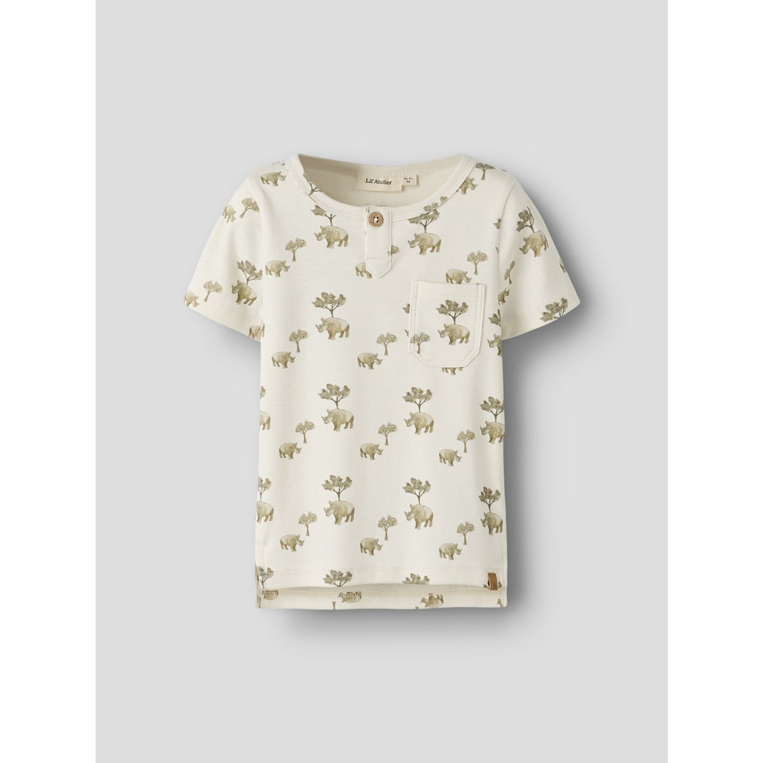 Gjør hverdagen litt stiligere for barnet ditt med Lil'Atelier Coconut Milk Rhino Nmmlayo Ss Slim Topp. Denne toppen kombinerer lett og elastisk jersey-stoff for ultimat komfort og bevegelsesfrihet. Det myke, behagelige materialet og den slim fit-passformen sørger for at barnet ditt kan bevege seg fritt og være komfortabel gjennom hele dagen. Det unike designet med bestefarhals, korte ermer og knappfesting gir en klassisk, men moderne touch. Den sjarmerende brystlommen og stilsikre printet over hele topplag cool hverdagsstil. Perfekt til lek og ulike aktiviteter!