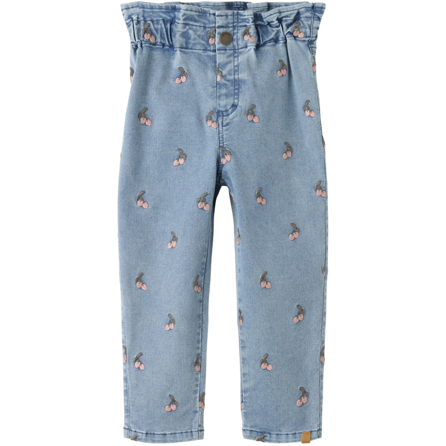 Oppdag vårt nyeste tilskudd til barnegarderoben: Lil'Atelier Medium Blue Denim Cherry Nmfdeva Loose Emb Jeans. Disse løstsittende jeansene er laget av slitesterk denim, perfekt for barn i bevegelse. Med en behagelig løs passform og justerbar midje tilpasser de seg enkelt etter barnets vekst og tilbyr ubegrenset komfort.