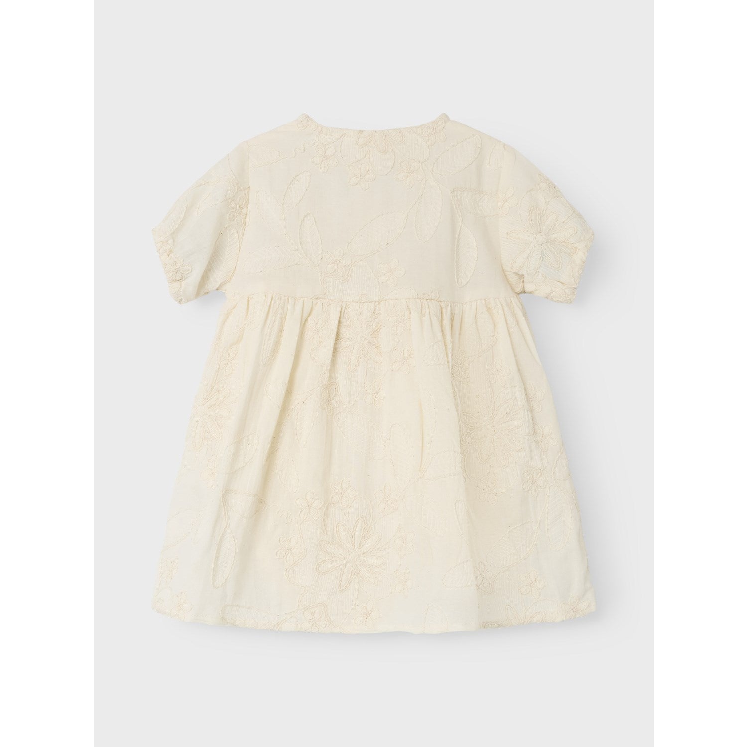 Med detaljer som bestefar-hals, korte ermer med elastiske mansjetter, og praktiske knappelukninger inkludert trykknapper i skrittet, kombinerer denne kjolen stil med funksjonalitet. Broderidetaljene og den subtile etiketten legger til et elegant preg. Normal passform sikrer at kjolen er behagelig å bevege seg i, og materialet er slitesterkt, noe som garanterer lengre levetid selv ved hyppig bruk.