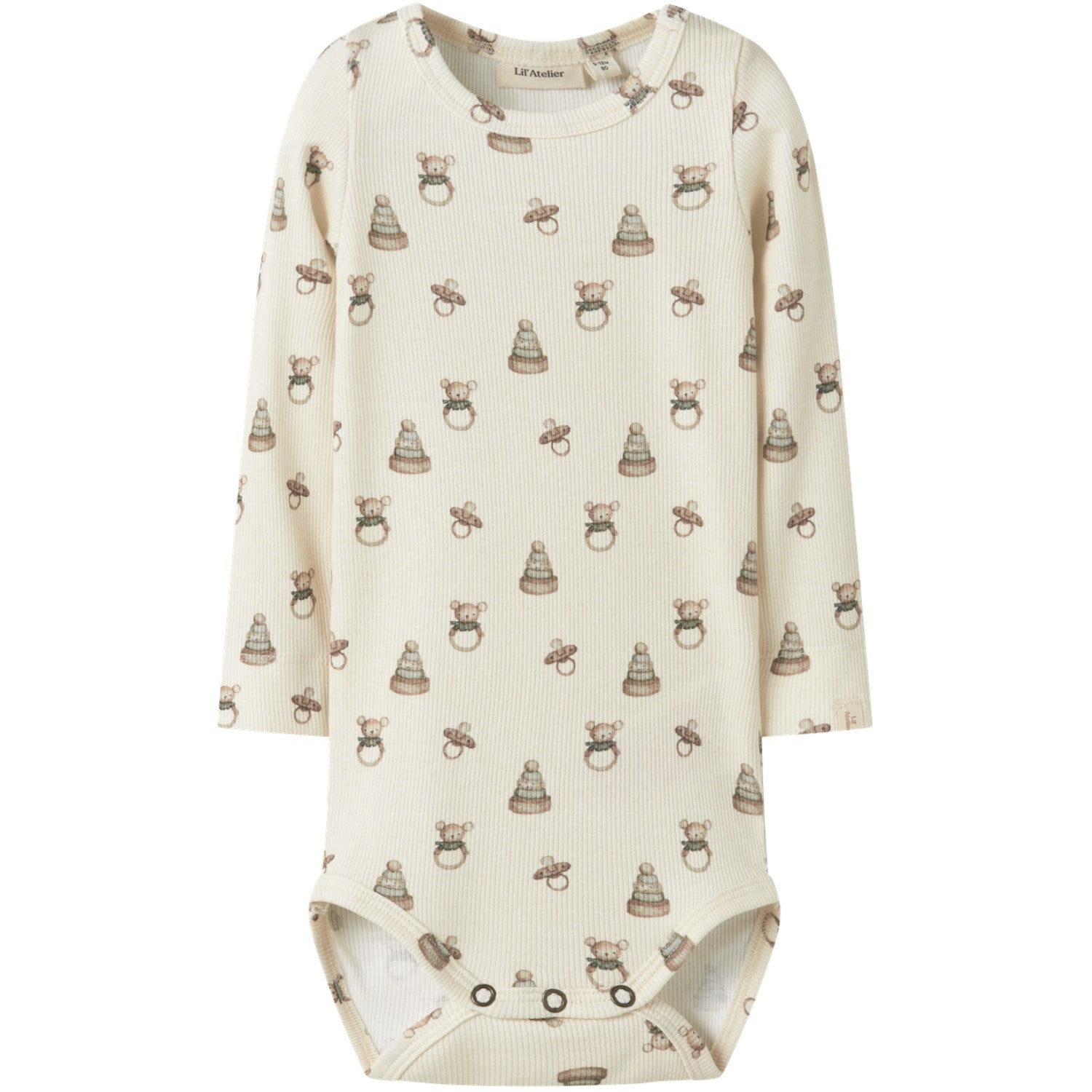 Gjør hverdagen behagelig og stilfull for de minste med Lil'Atelier Turtledove Toy Nbngavo Emo Ls Slim Body Lil Noos. Denne bodyen er laget av jersey, et lett og elastisk materiale som gir mykhet mot huden og frihet til å bevege seg. Med sitt tidsriktige design, bestefarhals og lange ermer kombinerer den klassisk stil med moderne komfort. Bodyen har trykkboltfesting på skulderen for enkel påkledning, mens det gjentatte trykket over hele gir et lekent preg. Perfekt for små oppdagelsesreisende, og en sikker vinner i barnegarderoben. Ta vare på denne bodysuiten ved å unngå ild og følge vaskeinstruksjonene nøye.