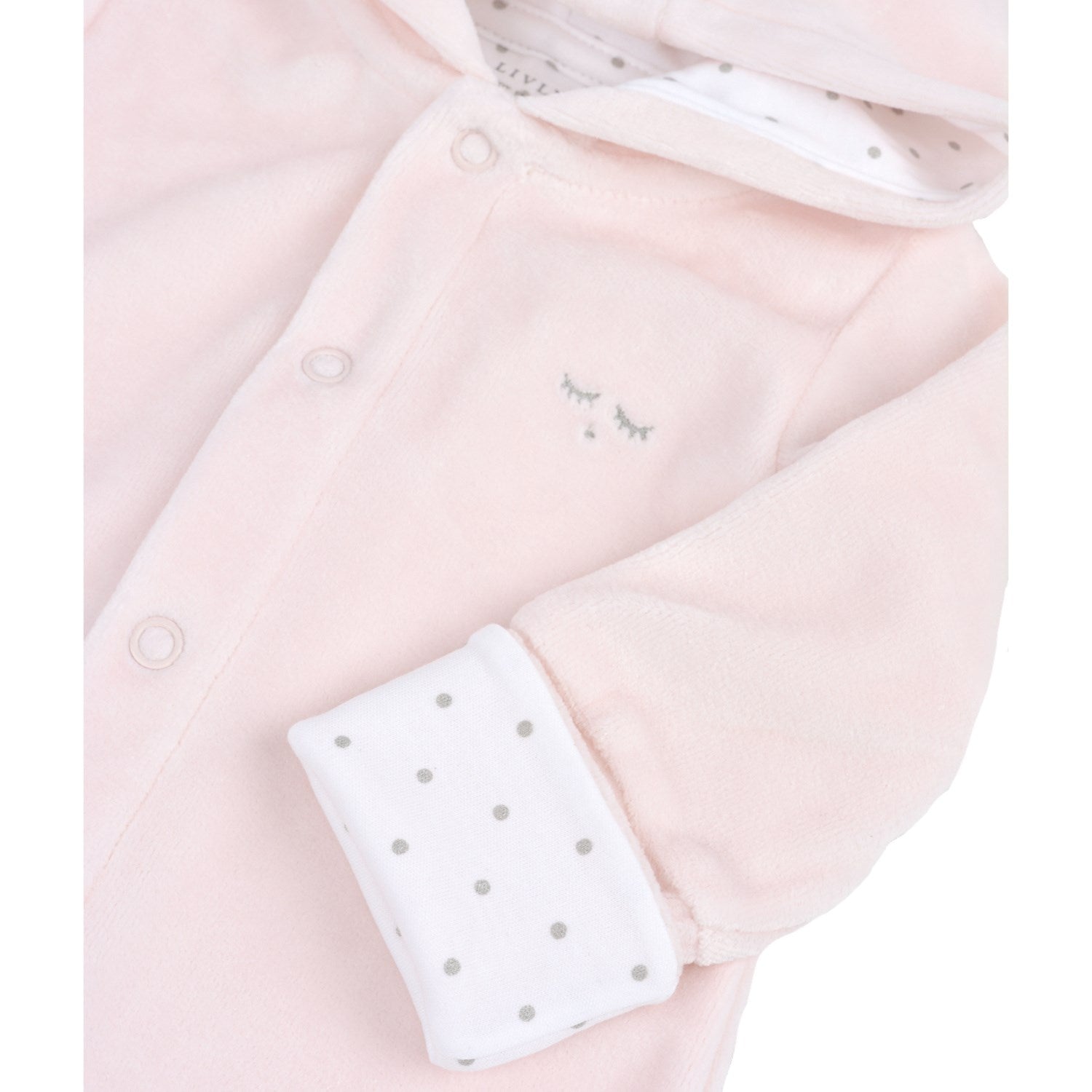 Den sjarmerende Livly Pink Plush Bunny One-Piece som er laget for små oppdagelsesreisende. Denne one-suiten er laget av en myk bomullsblanding som sikrer komfort hele dagen. Det søte rosa designet er dekorert med elegante sølvgrå prikker, og de praktiske trykknappene gjør det enkelt å skifte. Hetten, utsmykket med kjærlige kaninører, gir et snev av eventyr til hverdagen. Perfekt til babyshower-gaver eller som et søtt tillegg til barnets garderobe.