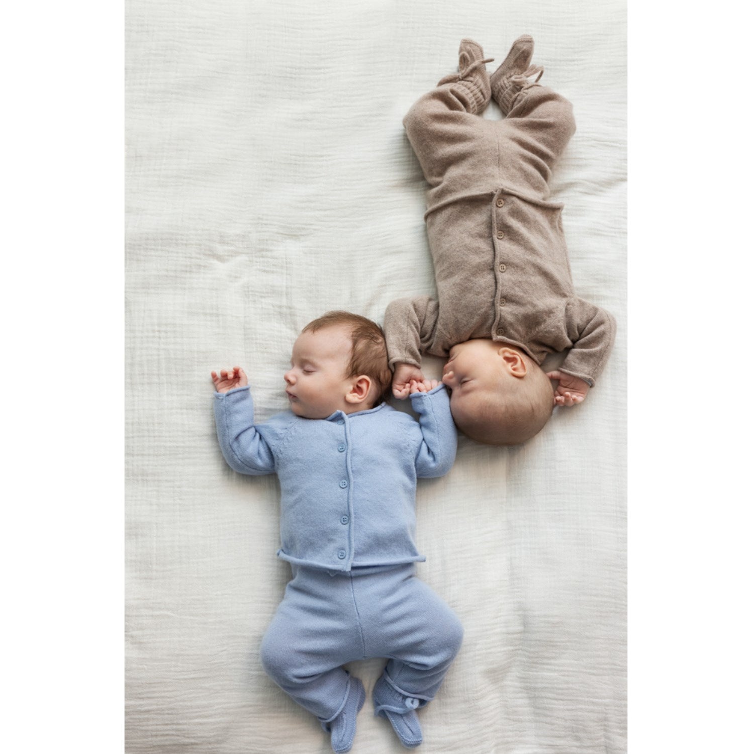 Gi barnet ditt ekstra varme og stil med MarMar Cashmere Alpaca Melange Tamla Cardigan. Denne myke kasjmircardiganen har knappelukking foran, charmende rullekant og praktiske raglanermer, som gir bevegelsesfrihet og komfort. Perfekt for kjølige dager og lett å kombinere med andre plagg. Materialer: 100% Kashmir Vaskeinstruksjoner: Vask for hånd