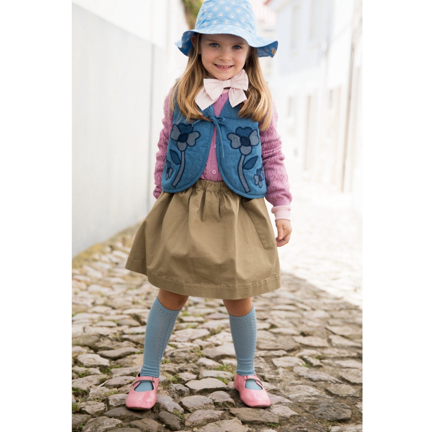 Gi barnets garderobe et tropisk tilskudd med MarMar Chino Twill Palm Leaves Simba Skjørt. Dette nydelige chino-skjørtet er laget med en behagelig elastisk linning og har et lekent palmeløv-mønster. Den utvidede designen gir god bevegelsesfrihet, og de to romslige sidelommene er praktiske for små skatter. Den over-kne lengden sørger for passende dekning for lek og moro. Lett å vedlikeholde, dette skjørtet holder både stil og komfort i hverdagens eventyr.