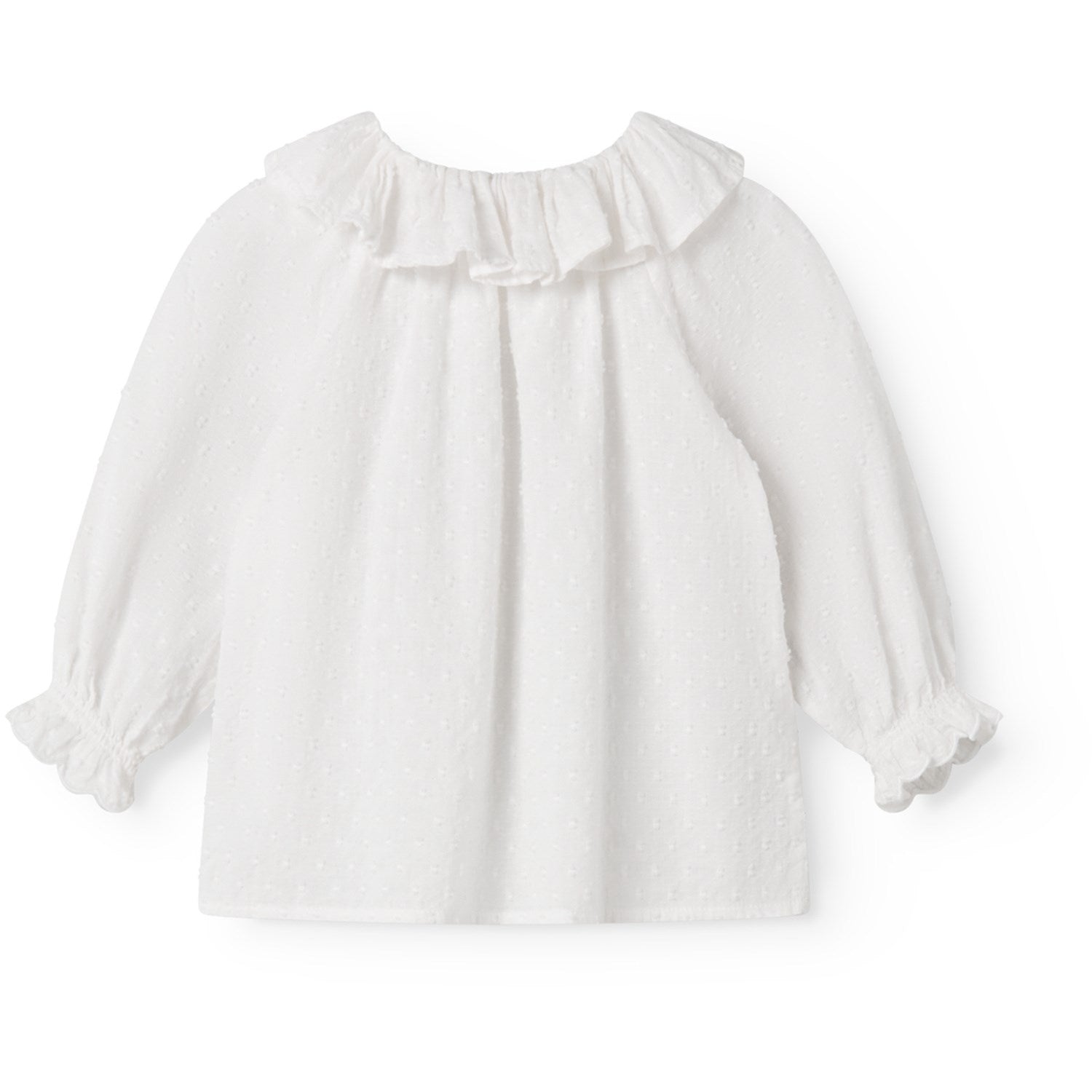 Kle barnet ditt i tidløs eleganse med MarMar Fine Dobby White Tia Bluse. Denne langarmede blusen har et delikat brodert mønster og praktiske elastikker ved kragen og mansjettene som gir en behagelig passform. Perfekt for enhver anledning, fra lek til familiebegivenheter. Komfort møter stil i denne sjarmerende blusen, sikker på å bli en favoritt i barnegarderoben.