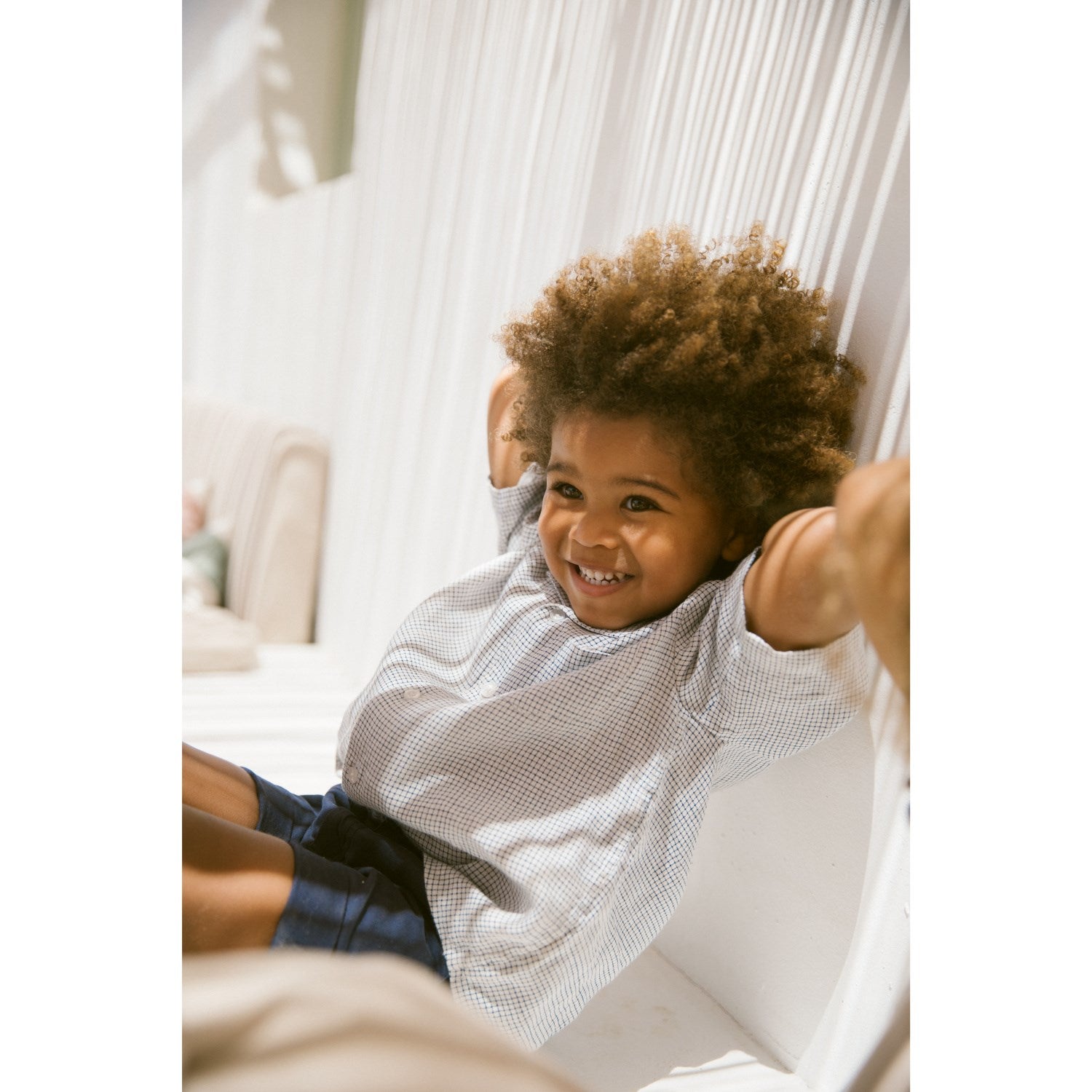 Gjør sommerdagen ekstra sjarmerende med MarMar Linen Mini Check Tage skjorte! Denne kortermede skjorten har en klassisk krage, smart knappelukking og en søt liten lomme foran. Laget av lett og luftig lin av høy kvalitet, som ikke bare ser bra ut, men også føles fantastisk avkjølende mot huden. Lin er et naturmateriale som puster og tilpasser seg den lille mannens lek og bevegelse. For hver vask blir skjorten bare mykere og dens naturlige krøller gir et uformelt preg. Perfekt for en varm sommerdag og trygg å bruke med Oeko-tex-sertifisering®.