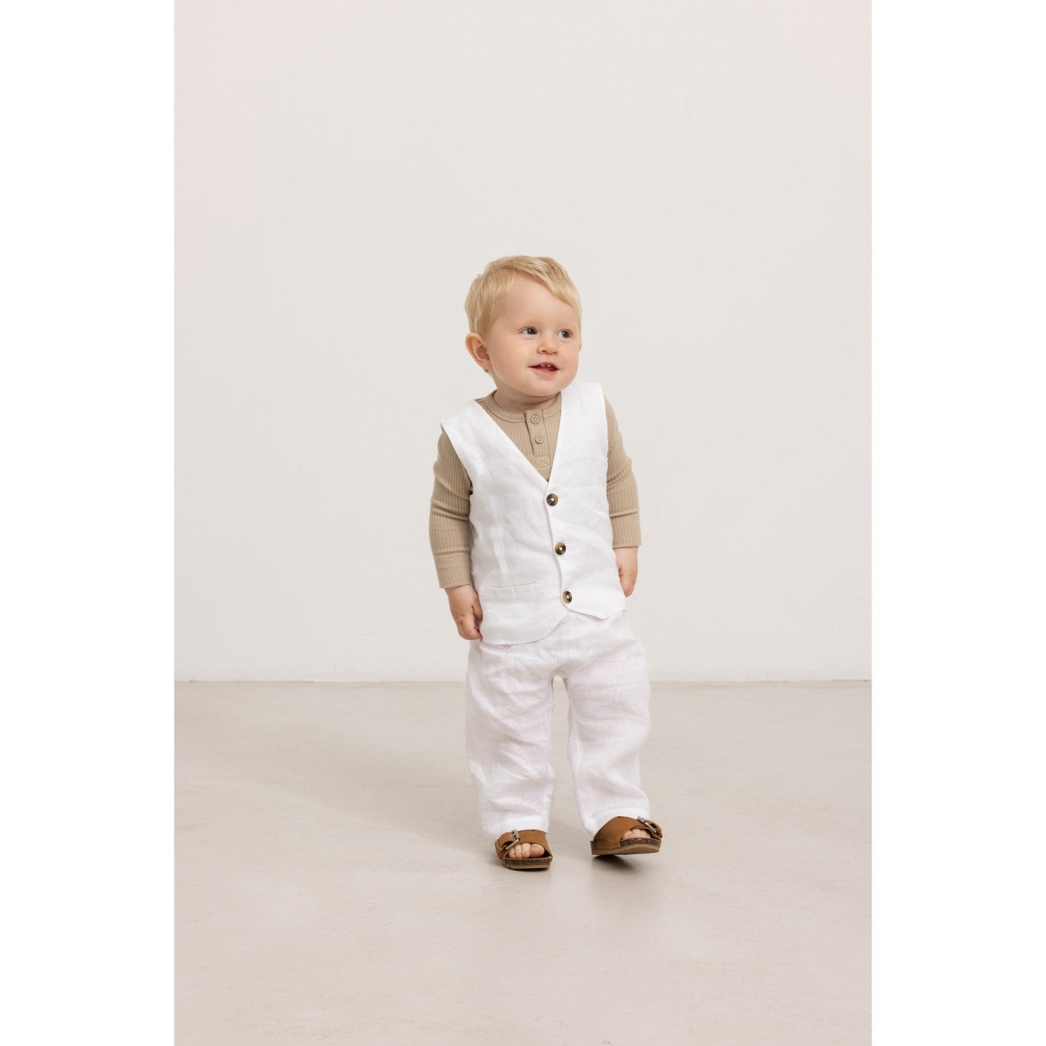 Skjem bort den lille med disse MarMar Linen White Panu L-buksene. De har en fin løs passform og er laget av 100% naturlig lin som føles friskt og svalende mot huden. Med elastikk i midjen gir disse buksene en komfortabel passform og fri bevegelse. Linkvaliteten sikrer pusteevne og blir enda mykere etter hver vask. Perfekt for små eventyrere som også setter pris på en stilig, uformell look. Sikkerhet og komfort går hånd i hånd, siden disse buksene er Oeko-tex-sertifisert® uten skadelige kjemikalier.