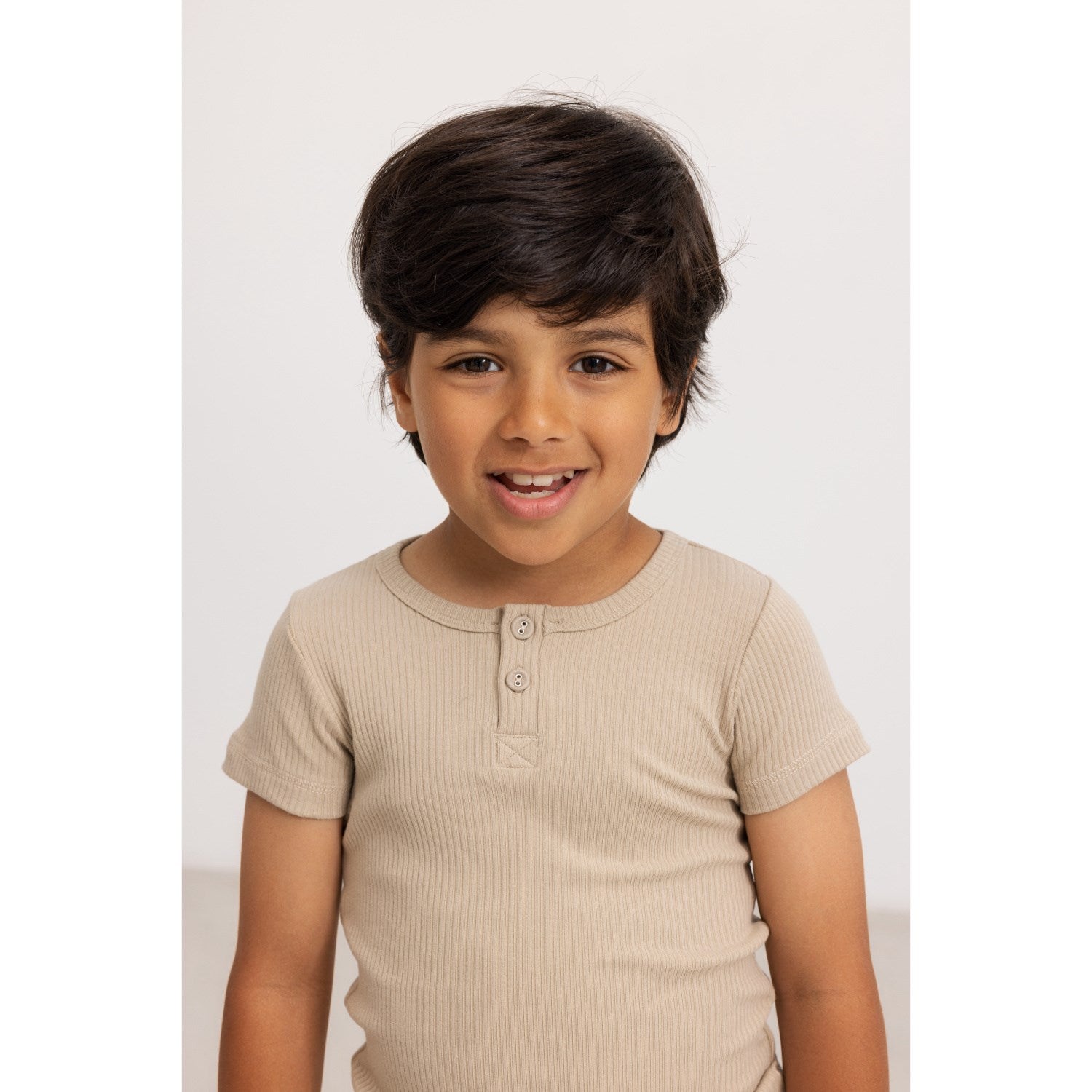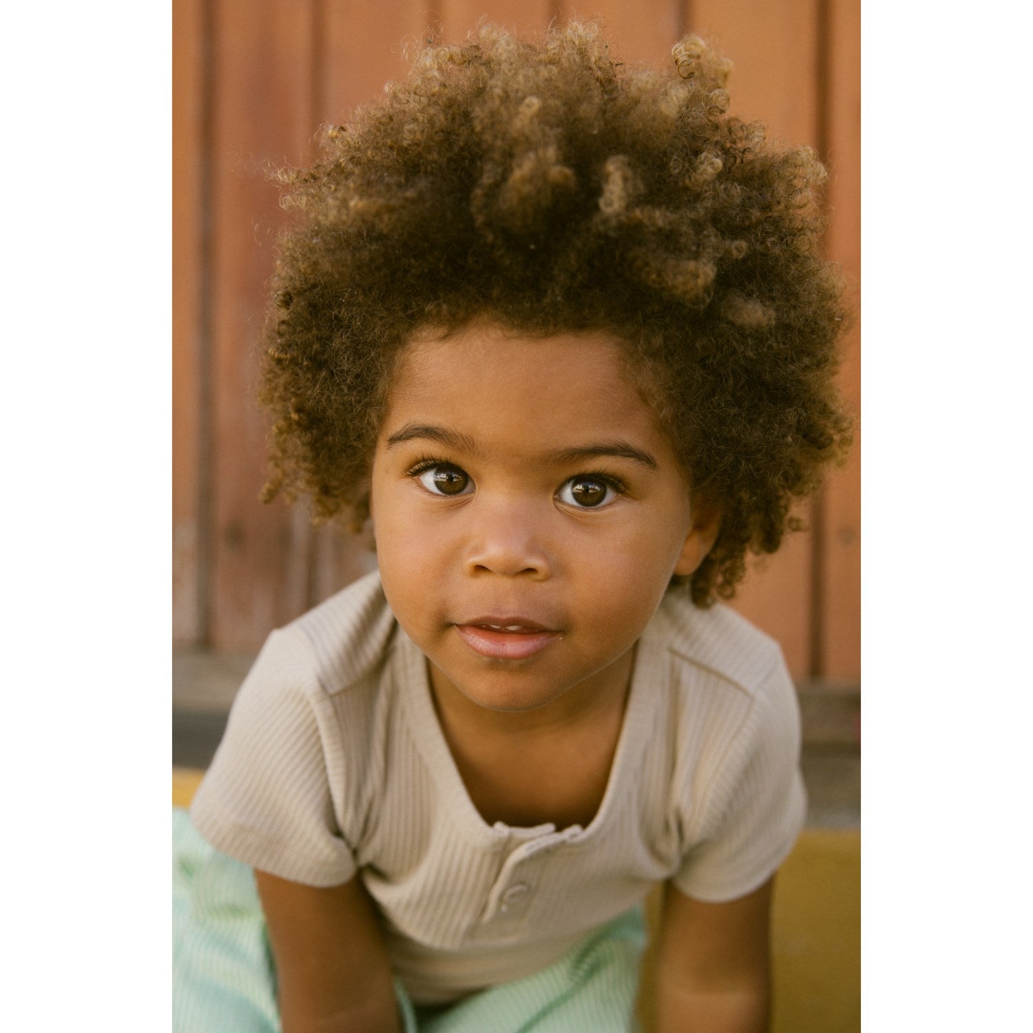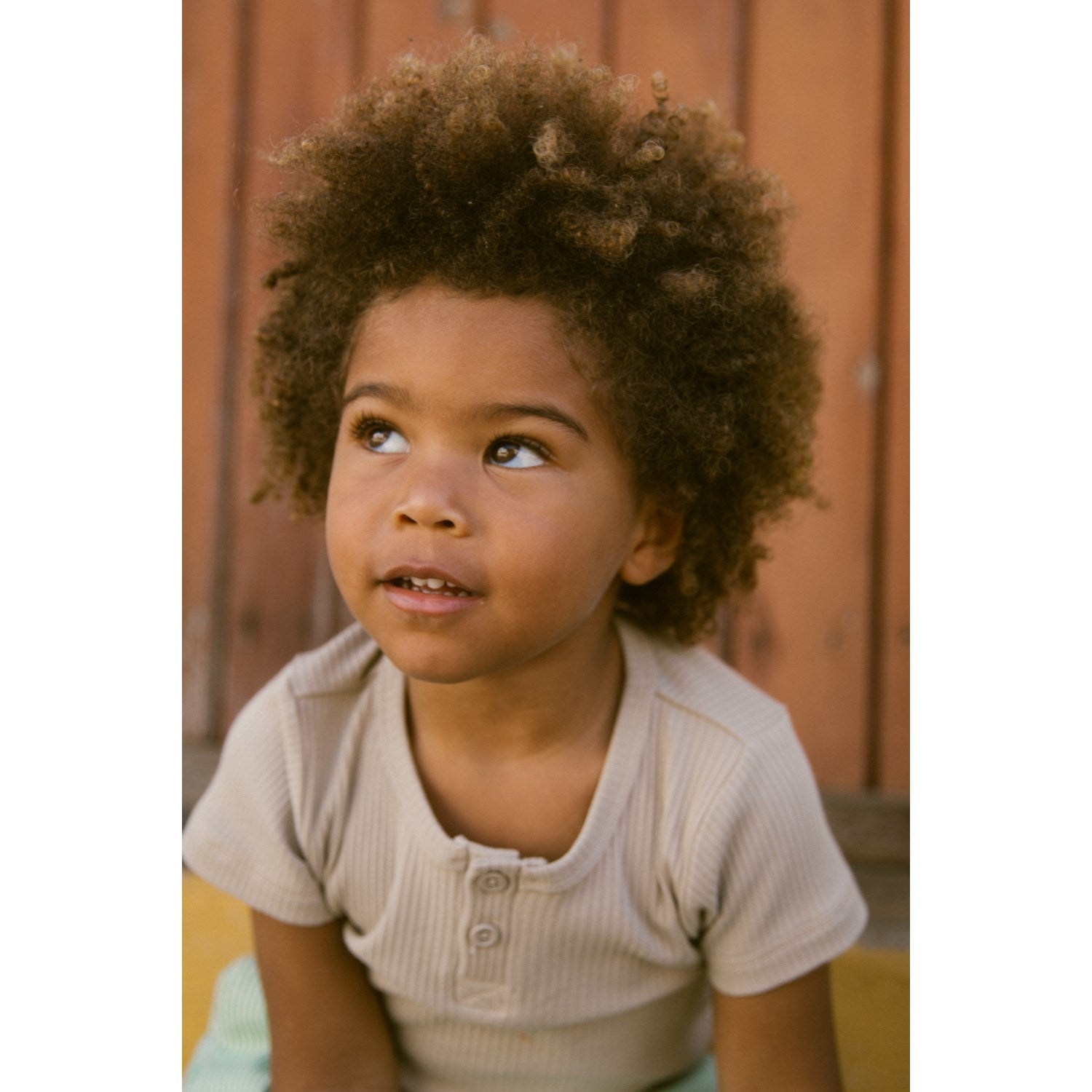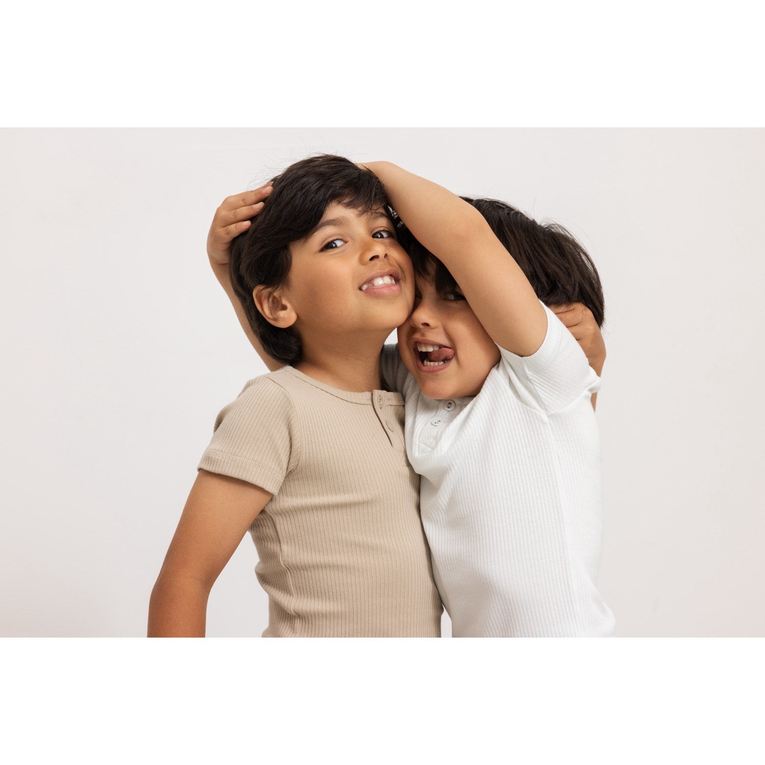 Sørg for at ditt lille stjerneskudd skinner i vår MarMar Modal Stone Wall T-skjorte! Denne myke og elastiske kortermede t-skjorten er designet med en praktisk knappestolpelukking og en komfortabel ribbestrikk. Den beholder formen og fargen selv etter mange vask, takket være den høye kvaliteten. I tillegg er den fri for skadelige kjemikalier, bekreftet av Oeko-Tex-sertifisering®. Med nye farger hver sesong er denne klassikeren raskt i ferd med å bli et favorittvalg i garderoben!