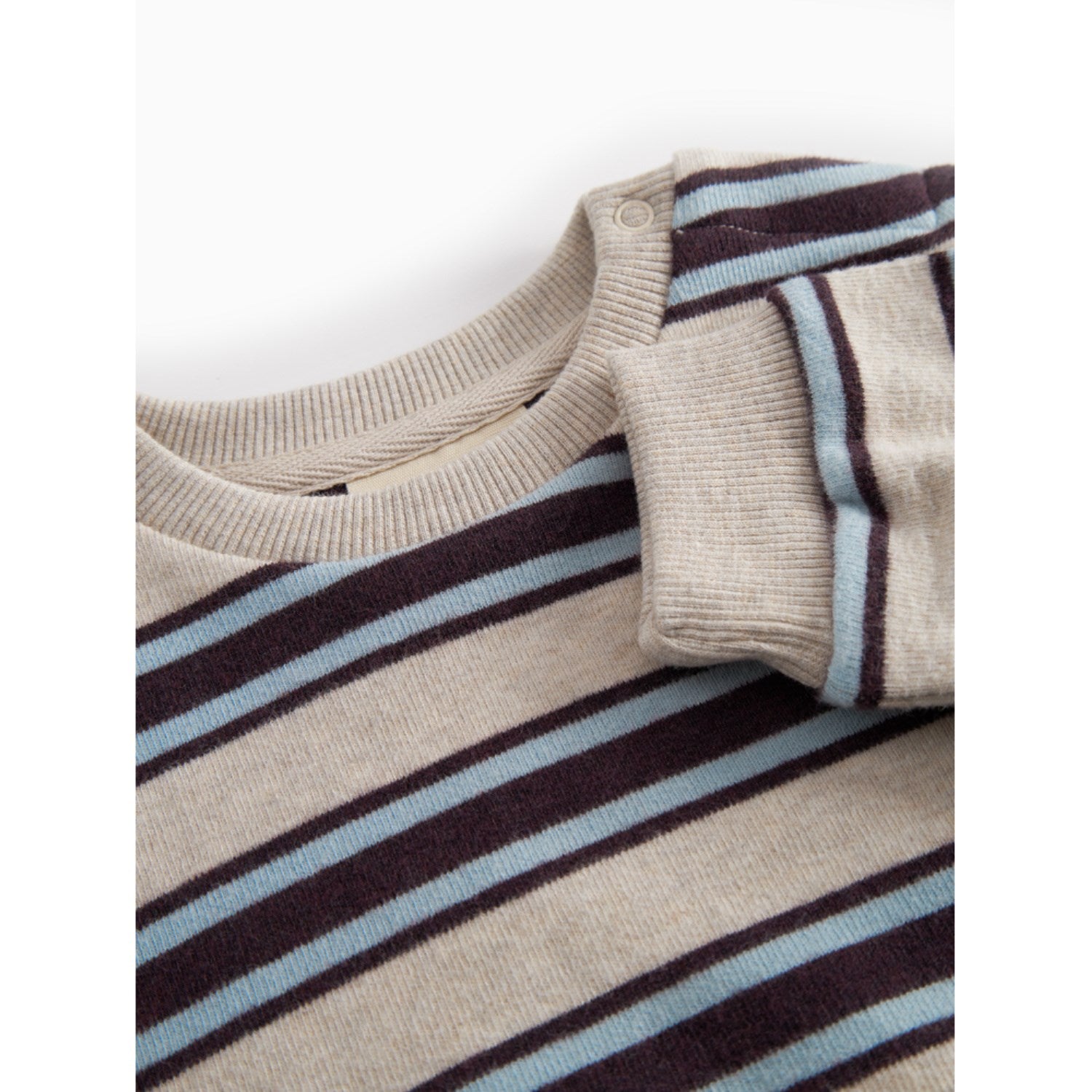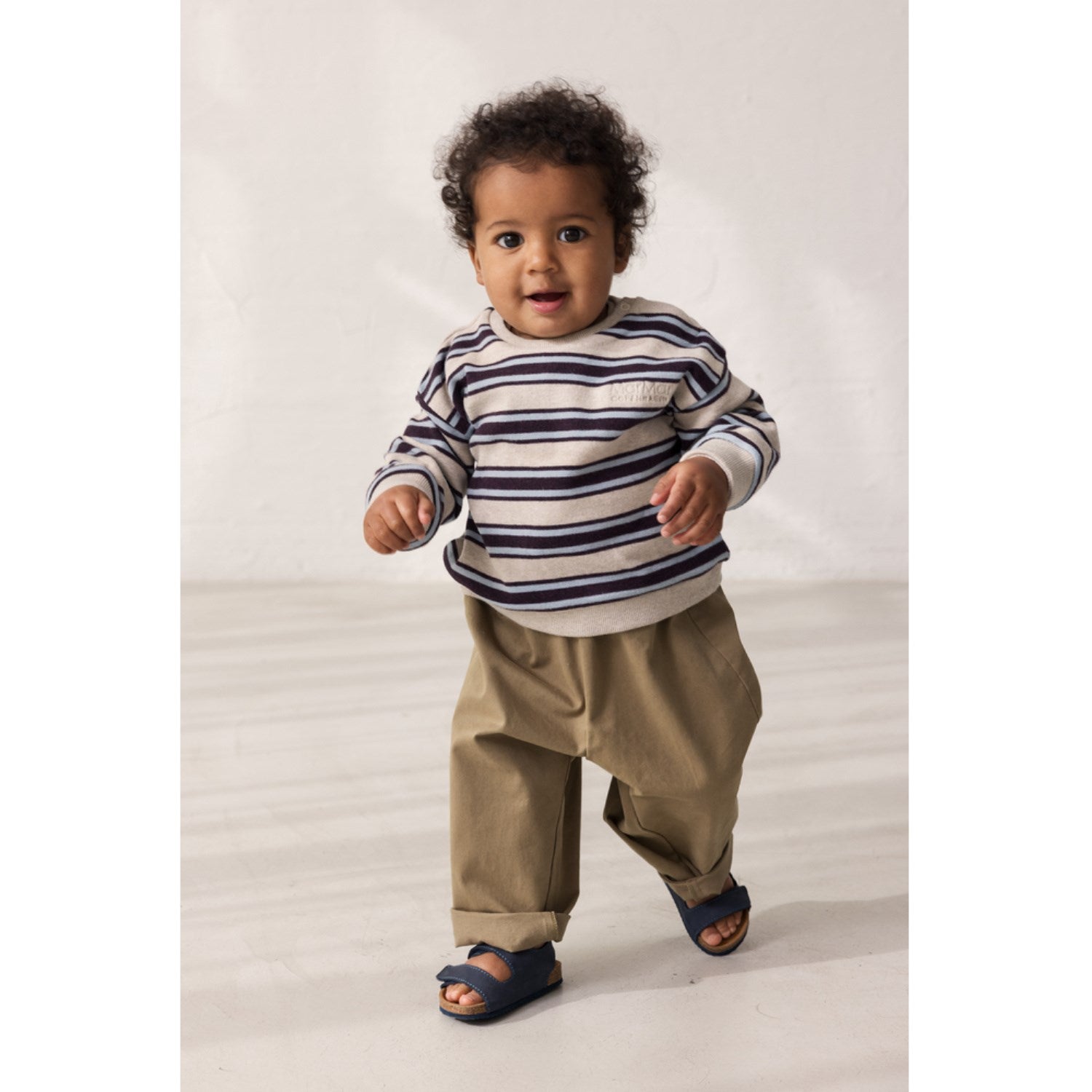 La MarMar Modal Sweat College Stripe Tammas B Collegegenser er perfekt for de små! Denne myke babygenseren er laget med behagelig ribb i halsen, ermene og rundt livet. Med sitt stilige stripemønster og diskrete trykknappelukking på venstre side, kombinerer den funksjonalitet med et moderne uttrykk. Genseren sørger for komfort i hverdagens små og store eventyr. Ideal for både lek og hvile, er dette et plagg som passer perfekt i enhver barnehagegarderobe.