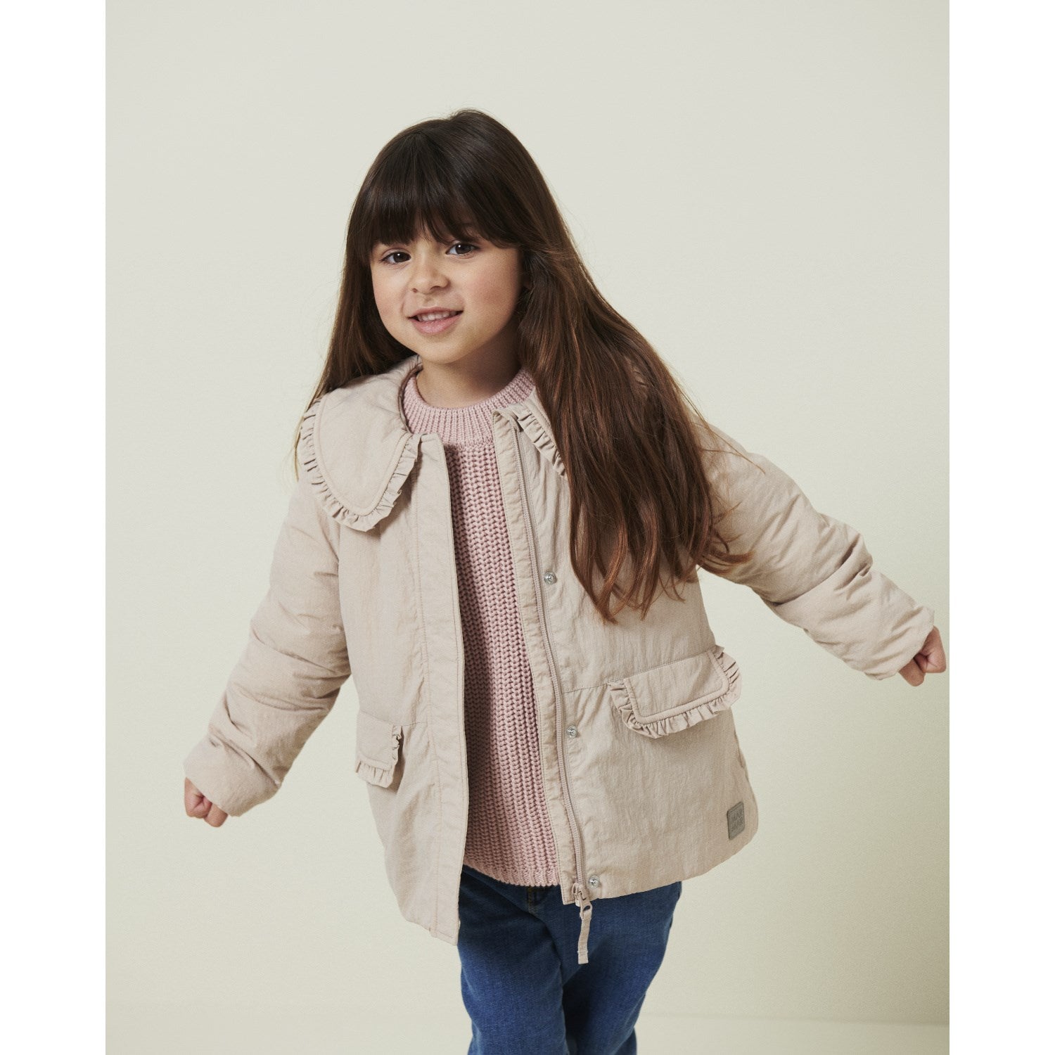 Gjør dagene varmere med MarMar Ride Cream Taupe Octavia jakke. Denne termojakken kombinerer stil med funksjon og gir en feminin vri med krage og søte volanger. Designet inkluderer praktiske lommer og sikker lukking med både glidelås og knapper. Jakken er laget av resirkulerte fibre, og er ikke bare myk og varm, men også vannavstøtende, vindtett og pustende. En miljøvennlig Bionic Finish® Eco sørger for at barnet ditt kan leke fritt uten bekymringer. Perfekt for små eventyrere som ønsker å utforske verden med stil!