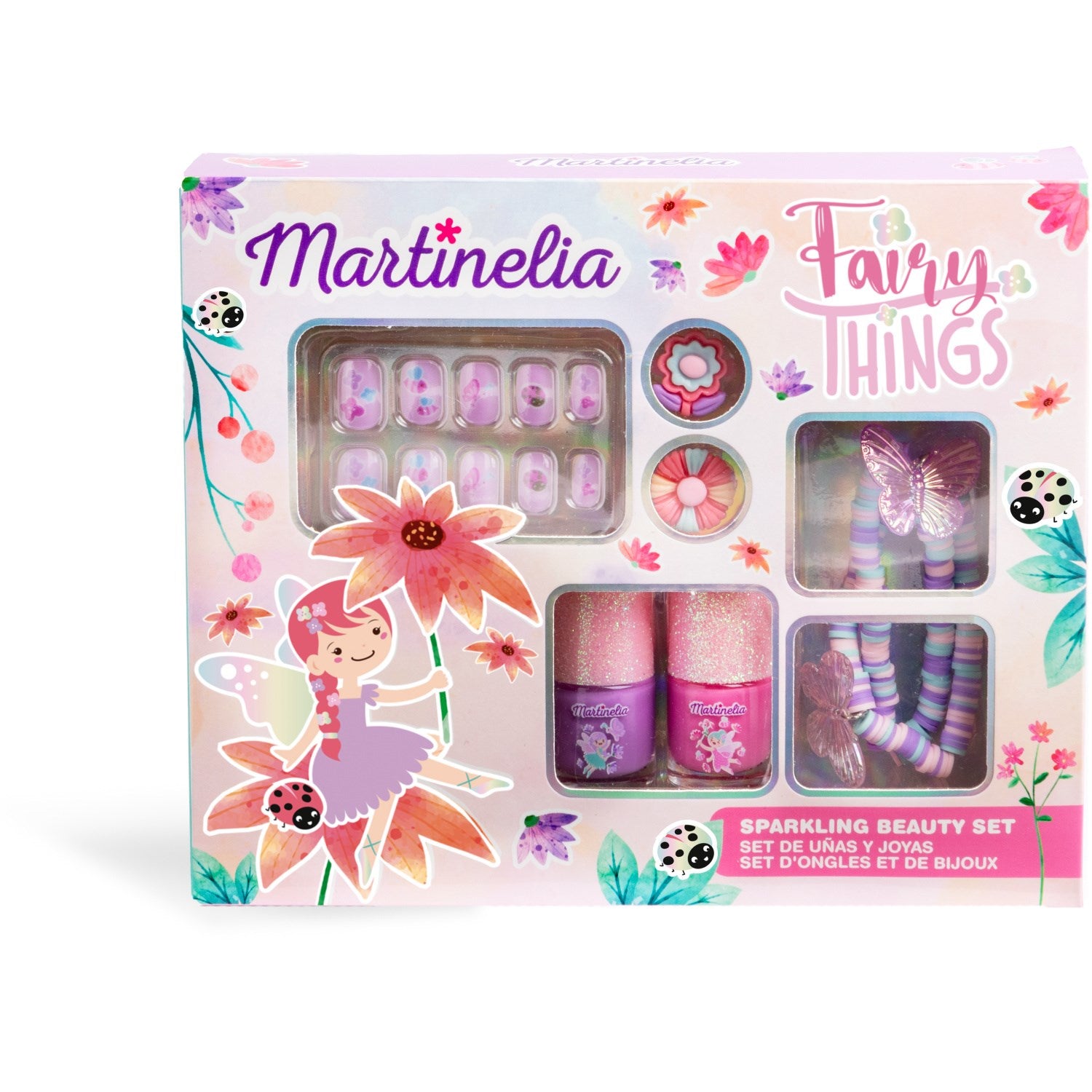 Oppdag gleden ved å pynte seg med Martinelia Fairy Things Sparkling Beauty Sett, perfekt for små moteentusiaster. Dette settet inkluderer 10 kunstige negler og 2 neglelakker, som garanterer trygg og giftfri moro. Sammen med 2 glitrende ringer og 2 søte armbånd, stimulerer det kreativitet og rollespill blant barn. Lett å bruke og ideelt for barn som elsker å utforske nye stiler, dette settet er også enkelt å oppbevare og vedlikeholde, noe som gjør det til en ypperlig gave for barn i alle aldre. Mål: 15,5x18,5x3