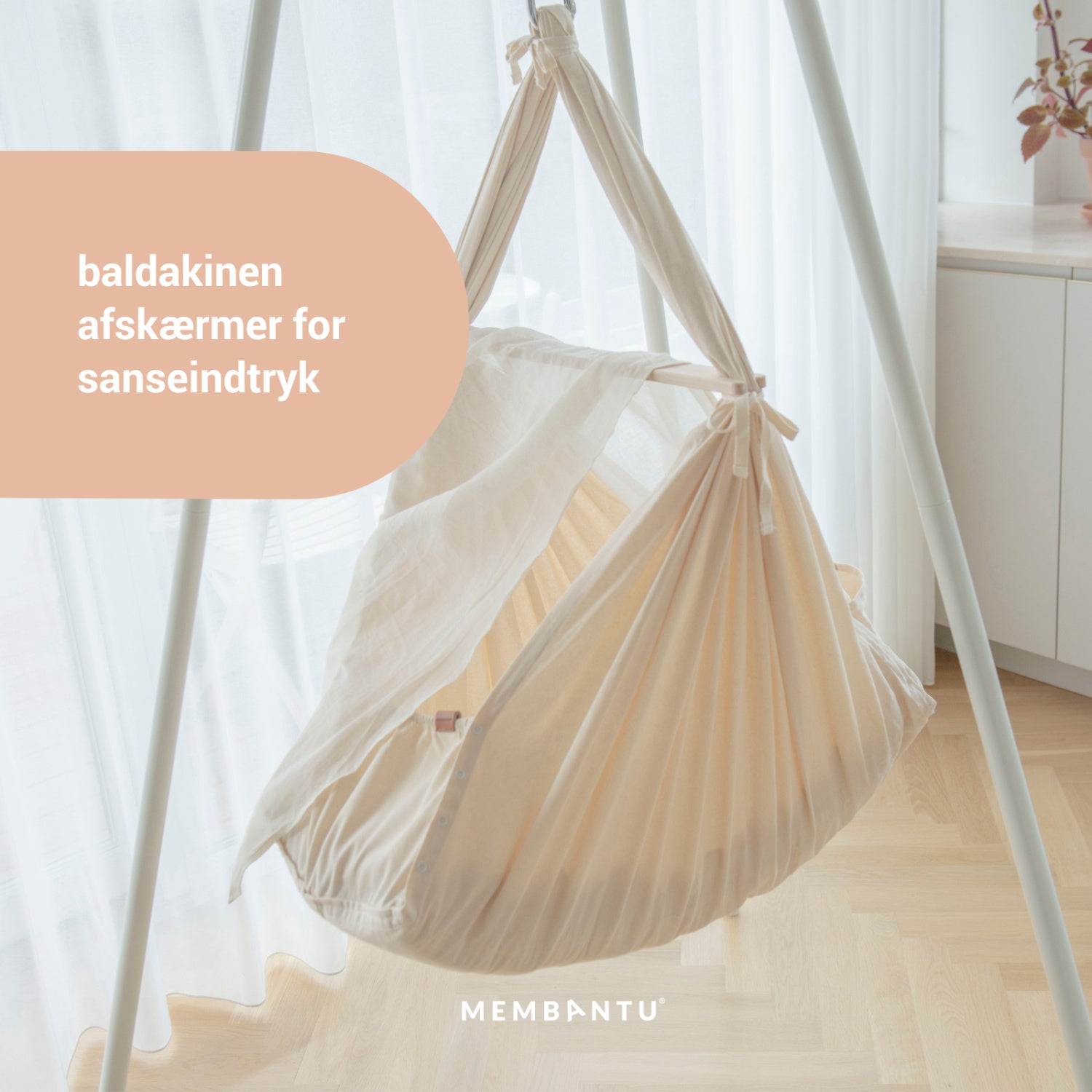 Gjør barnerommet til et trygt og stimulerende miljø med MEMBANTU Nature Organic Baby Hammock Premium. Denne unike hengekøyen kombinerer sikkerhet og ergonomisk design som støtter barnets naturlige stillinger, samtidig som den tilbyr funksjonell lagringsplass. Økologiske materialer og sjarmerende estetikk fremmer en fredelig hvilestund, og stimulerer barnets sanser og nysgjerrighet. En perfekt løsning som vokser med barnet og tilpasser seg dets utviklende behov. Alder: 0-10 måneder Materialer: Hengekøye: Økologisk bomull. Madrassfyll : Ull Mål: 90x32x100 cm Vaskeinstruksjoner: Håndvask, vask med lignende farger, må ikke blekes, ikke tørketrommel, ikke strykes, tørkes flatt