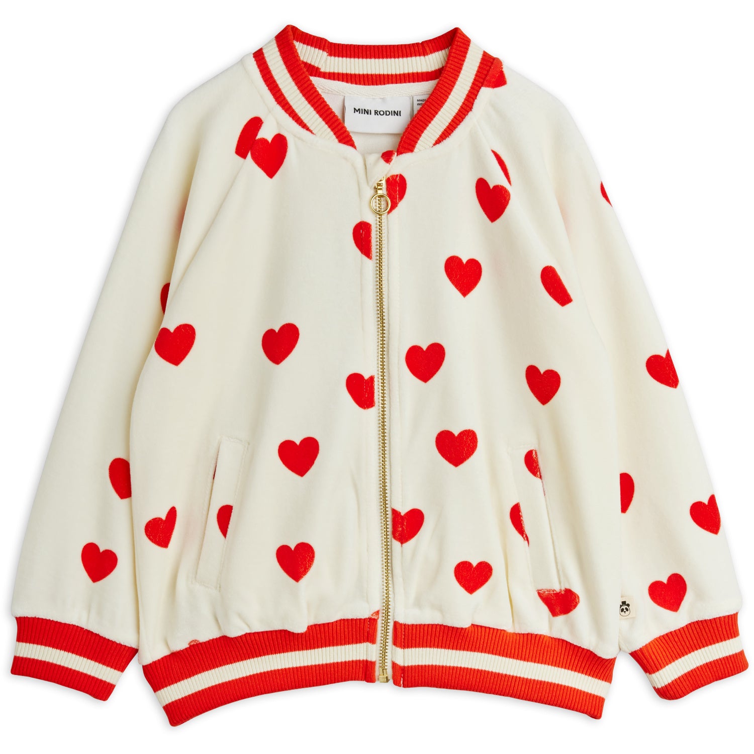 Mini Rodini White Hearts AOP Velour Baseball Cardigan - 80-86 er restordre og vil bli sendt så snart det er tilbake på lager.