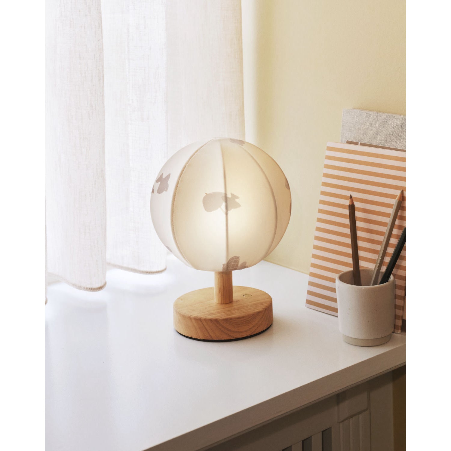 Gi barnerommet et magisk preg med Moonboon Over The Moon-nattlampen. Denne sjarmerende lampen, med det innbydende Ole Lukøje-illustrasjonsmønsteret, avgir en mild og beroligende glød som skaper en avslappende atmosfære. Perfekt for å roe ned før sengetid, lampens design kombinerer funksjonalitet med estetikk, og tilbyr både en dekorativ og praktisk tilnærming til soverommet. Introduser ditt barn til drømmenes verden med denne stimulerende og komfortable nattlampen. Materialer: Tre/ Materialet er 180G elastisk støttestoff. 95 % bomull og 5 % spandex.