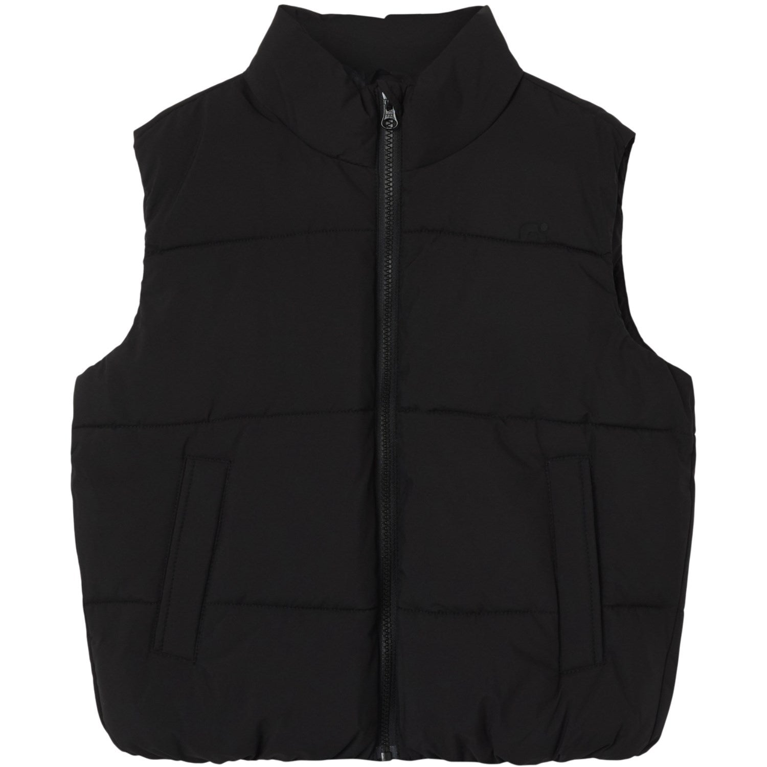 Gjør barnets garderobe klar for overgangssesongene med NAME IT Black Maket Vest - en stilig og funksjonell vest som er like komfortabel som den er moderne. Denne ermeløse vesten er laget med lett polstring, noe som gjør den ideell for bruk i mellomsesongene. Den høye halsen og glidelåslukkingen gir ekstra beskyttelse mot været, samtidig som elastiske kanter sørger for en god passform. Frontlommer tilbyr praktisk oppbevaring for små skatter.