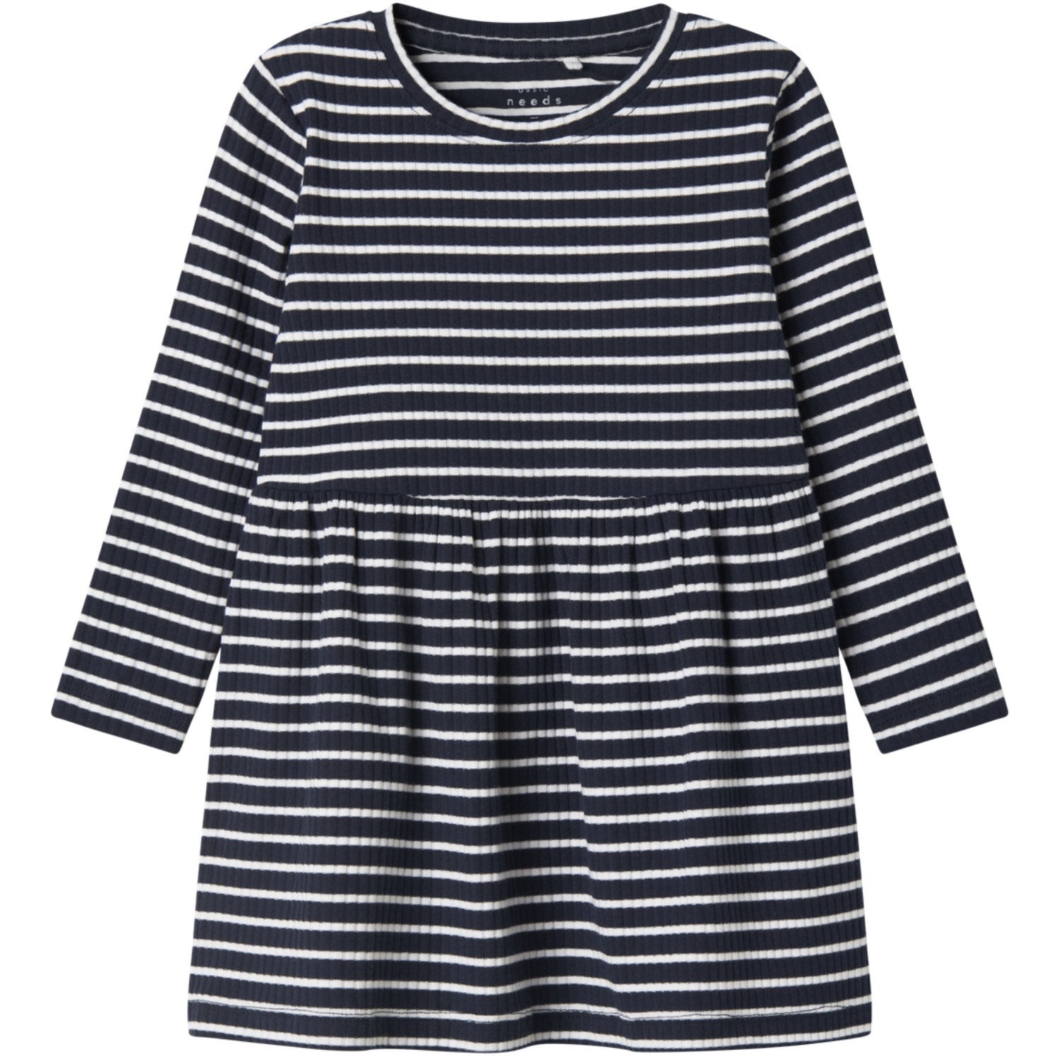 Gi barnets antrekk et løft med denne "Name It Bright White Dark Sapphire Vemma-kjolen". Laget i et mykt og stretchy jersey-stoff, tilbyr denne kjolen en kombinasjon av komfort og stil, med en herlig rund hals og lange ermer for beskyttelse og varme. Den normale passformen sikrer at barnet kan bevege seg fritt, enten det er i lek eller under mer formelle sammenhenger.