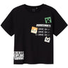 T-skjorten kommer i en ren, lys hvit farge med et dynamisk Minecraft-design som fanger oppmerksomheten. Den har en klassisk rund hals og korte ermer, noe som gjør den ideell for både lek og spesielle anledninger. Standard passformen og gummitrykket sørger for at t-skjorten sitter godt og samtidig føles myk mot kroppen.