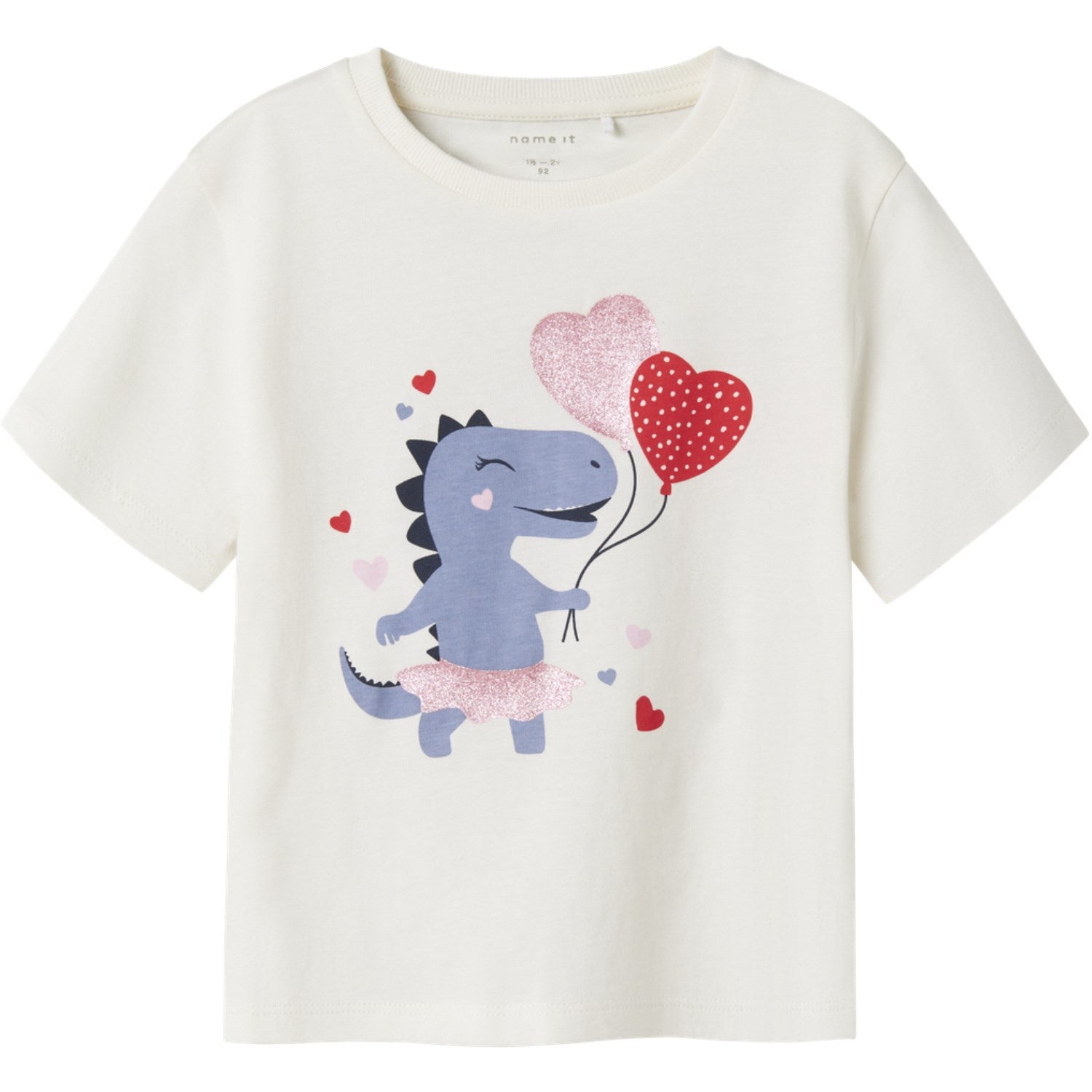 Gi den lille en stilfull oppdatering med Name It Coconut Milk Nmfkatinka Ss Nreg Topp Pb. Denne yndige T-skjorten i jersey gir en lett og elastisk kvalitet, perfekt for både lek og fest. T-skjorten har rund hals og korte ermer som sammen med normal passform sikrer en behagelig følelse gjennom dagen. Det glitrende glittertrykket og det myke pigmenttrykket legger en festlig touch til antrekket, mens det rene bomullsmaterialet gjør plagget enkelt å vedlikeholde. En ideell kombinasjon av komfort og stil!