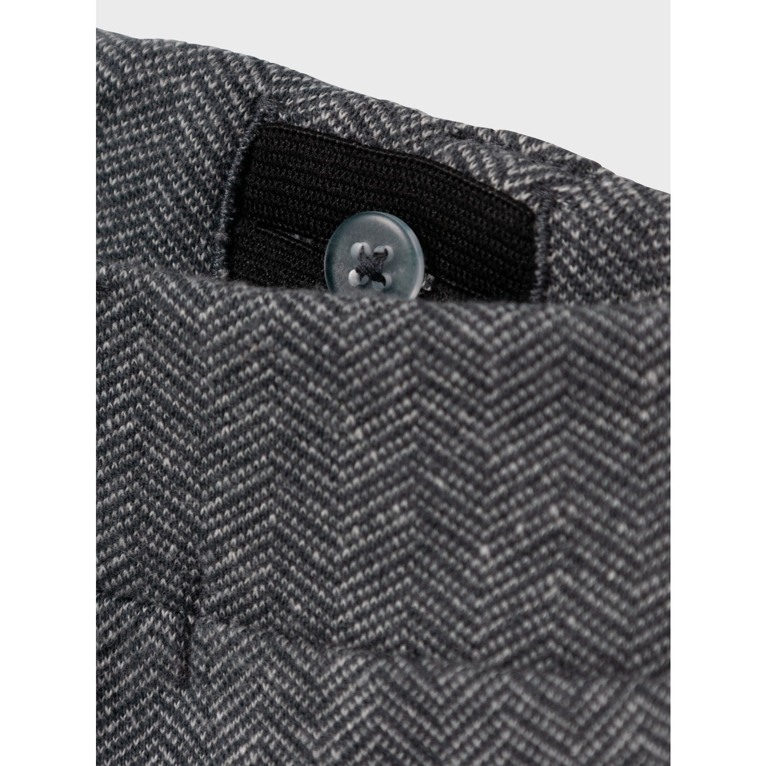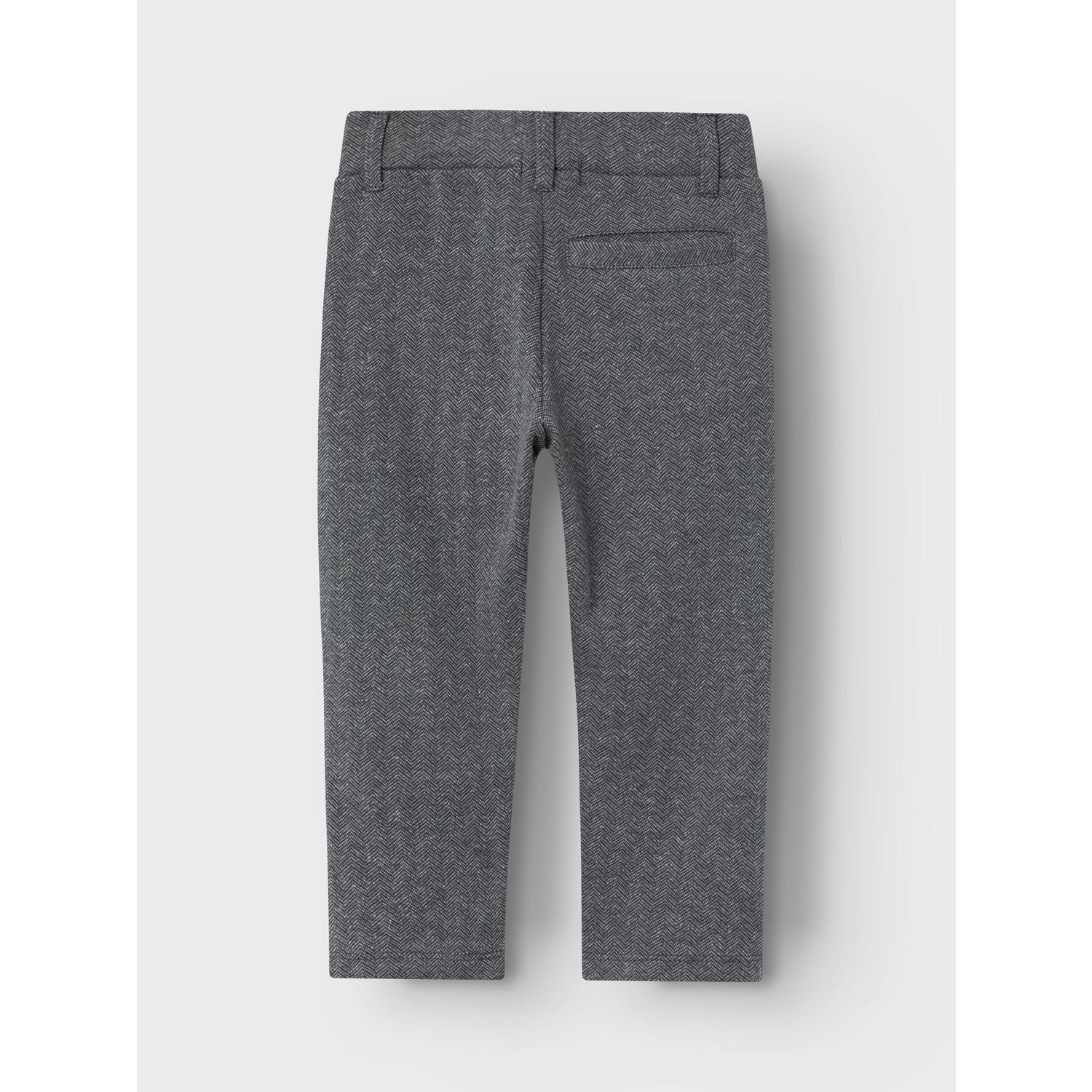 Med en mørk grå melange farge og subtile mønsterdetaljer, er disse buksene både moderne og lett å kombinere med annen garderobe. De kommer med funksjonelle detaljer som knappedetalj og justerbar midje, noe som sikrer en perfekt passform og gjør det enkelt å tilpasse buksene etter barnets vekst.