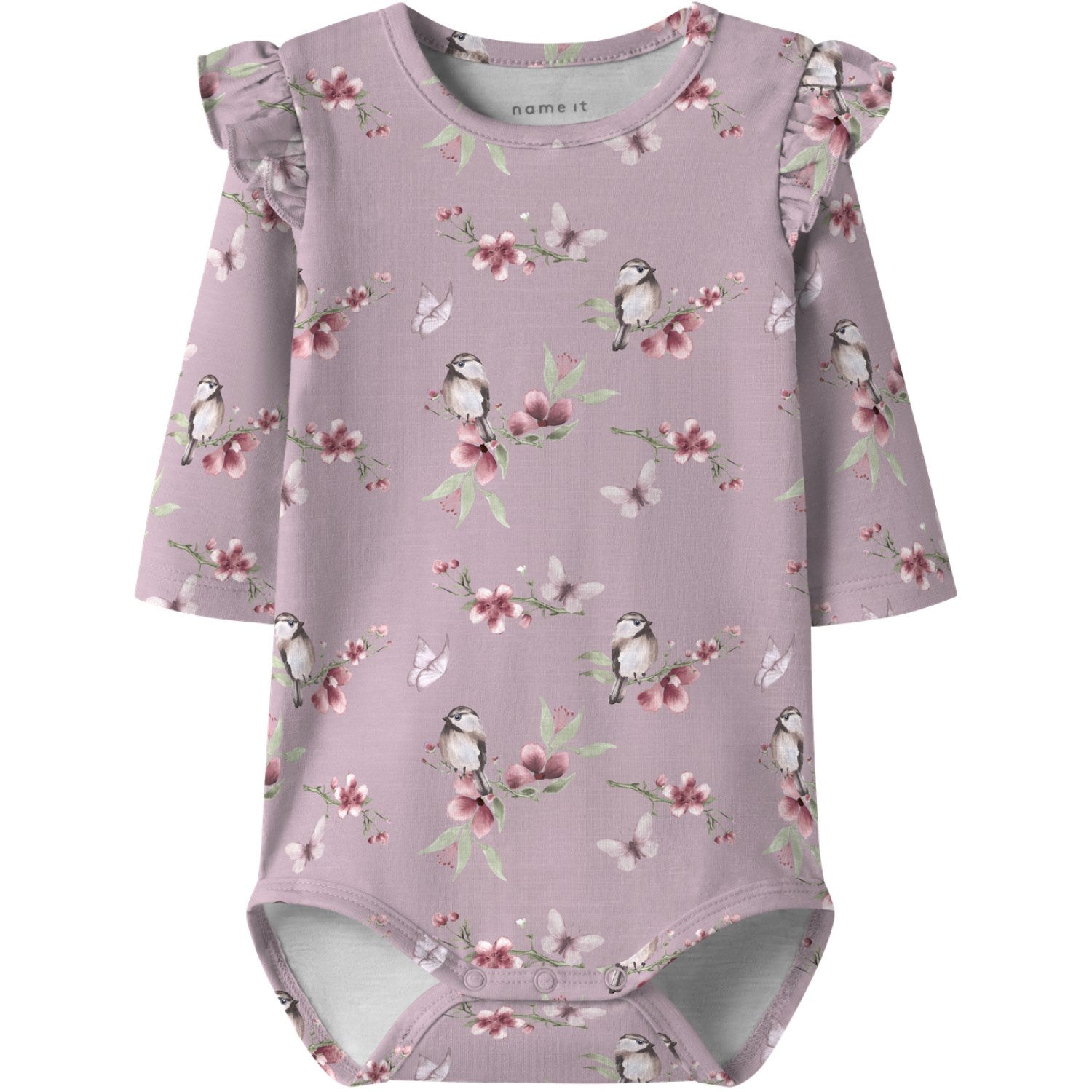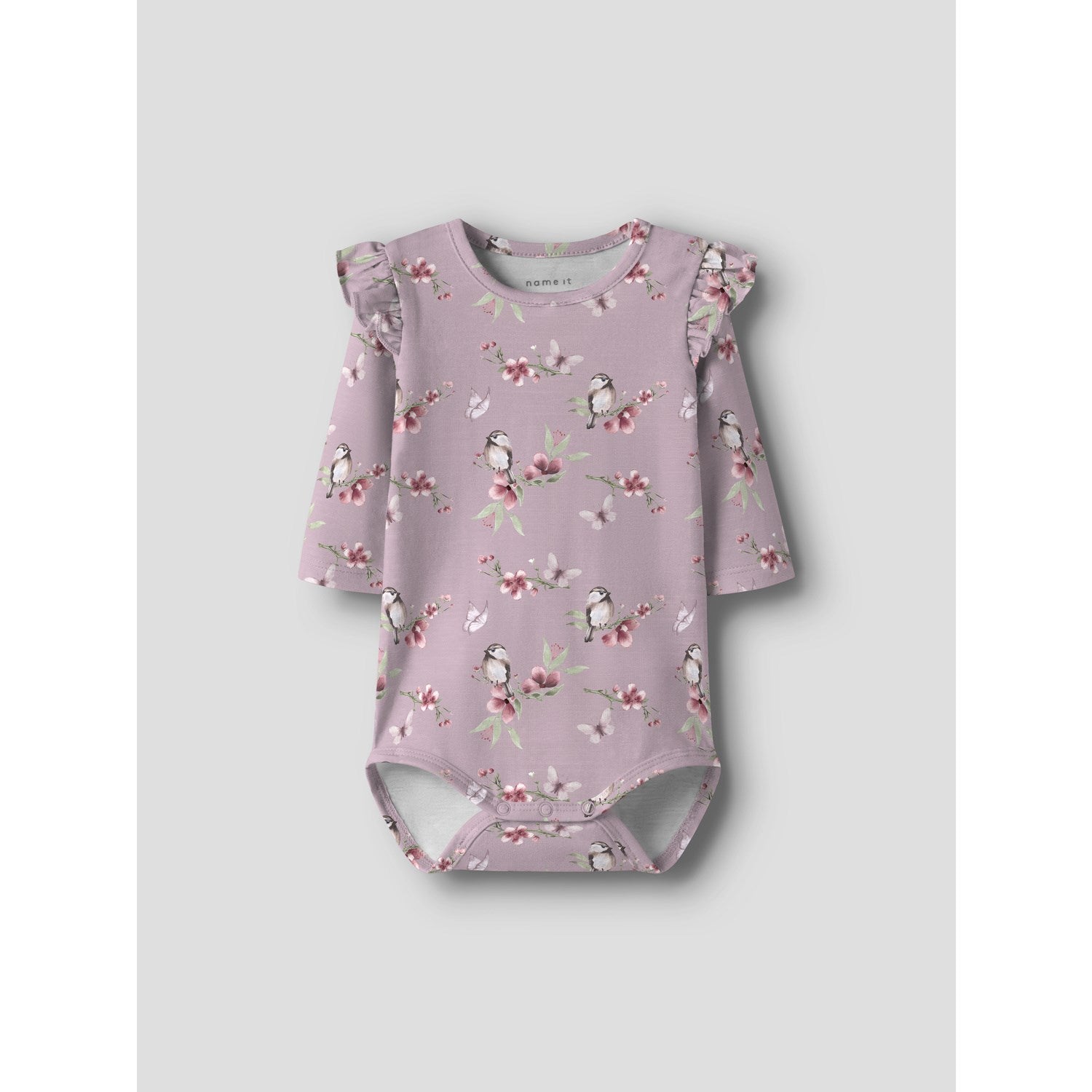 Gi den lille en herlig start med "Name It Dawn Pink Nbfbetty Ls Body". Denne sjarmerende bodysuiten i myk jersey byr på mykhet og stretch, slik at barnet kan bevege seg fritt og behagelig. Den friske rosa fargen og lekne trykket gir antrekket et muntert preg, mens volangdetaljene tilfører en søt finesse. Med praktiske trykk-knapper i skrittet og på skulderen, blir påkledningen enkel. Denne bodysuiten er ikke bare søt å se på, men også praktisk og komfortabel for lykkelige babydager. Pass på – den bør holdes unna ild.