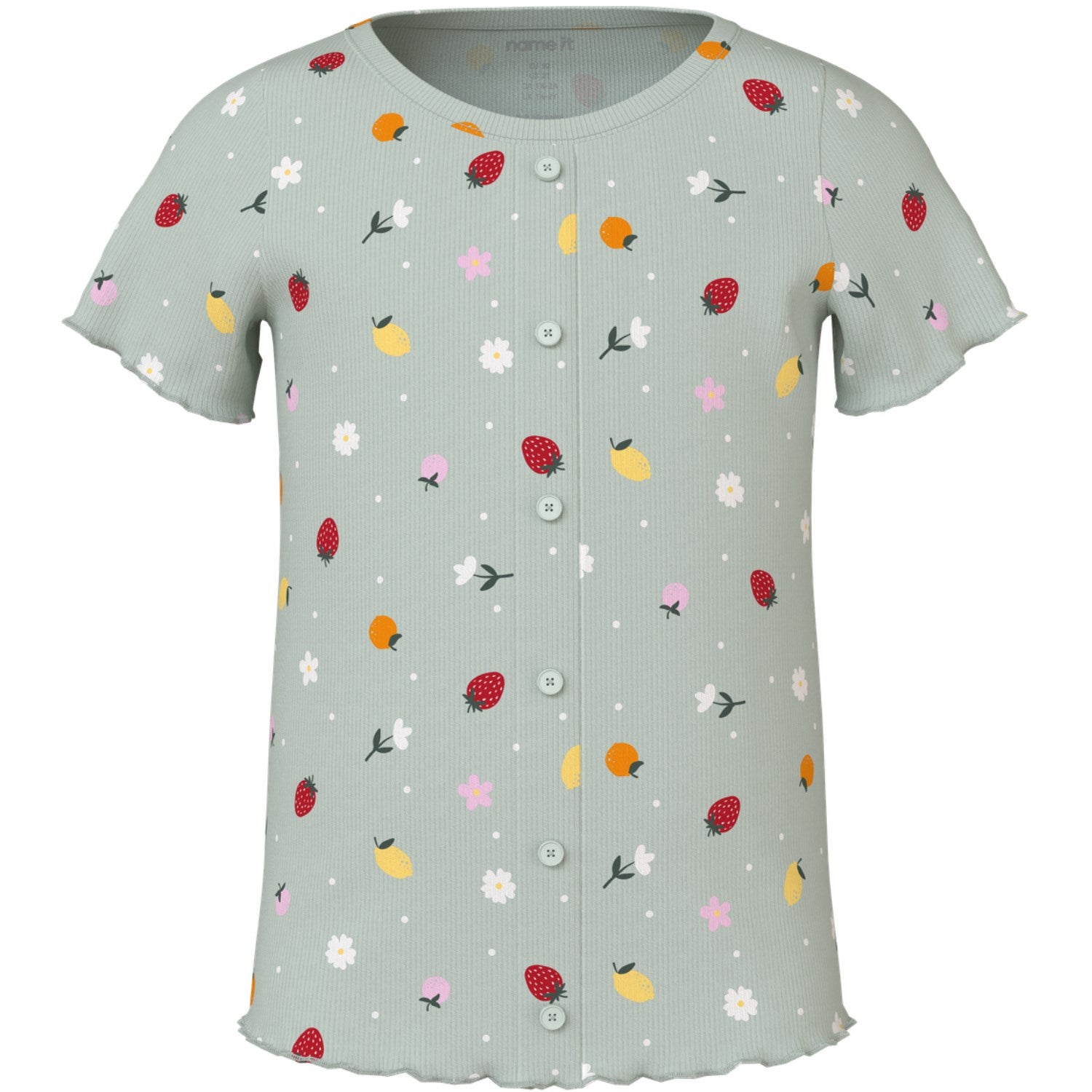 Name It Pale Aqua Fruit Flowers Nmfvemia Aop Ss Slim Topp